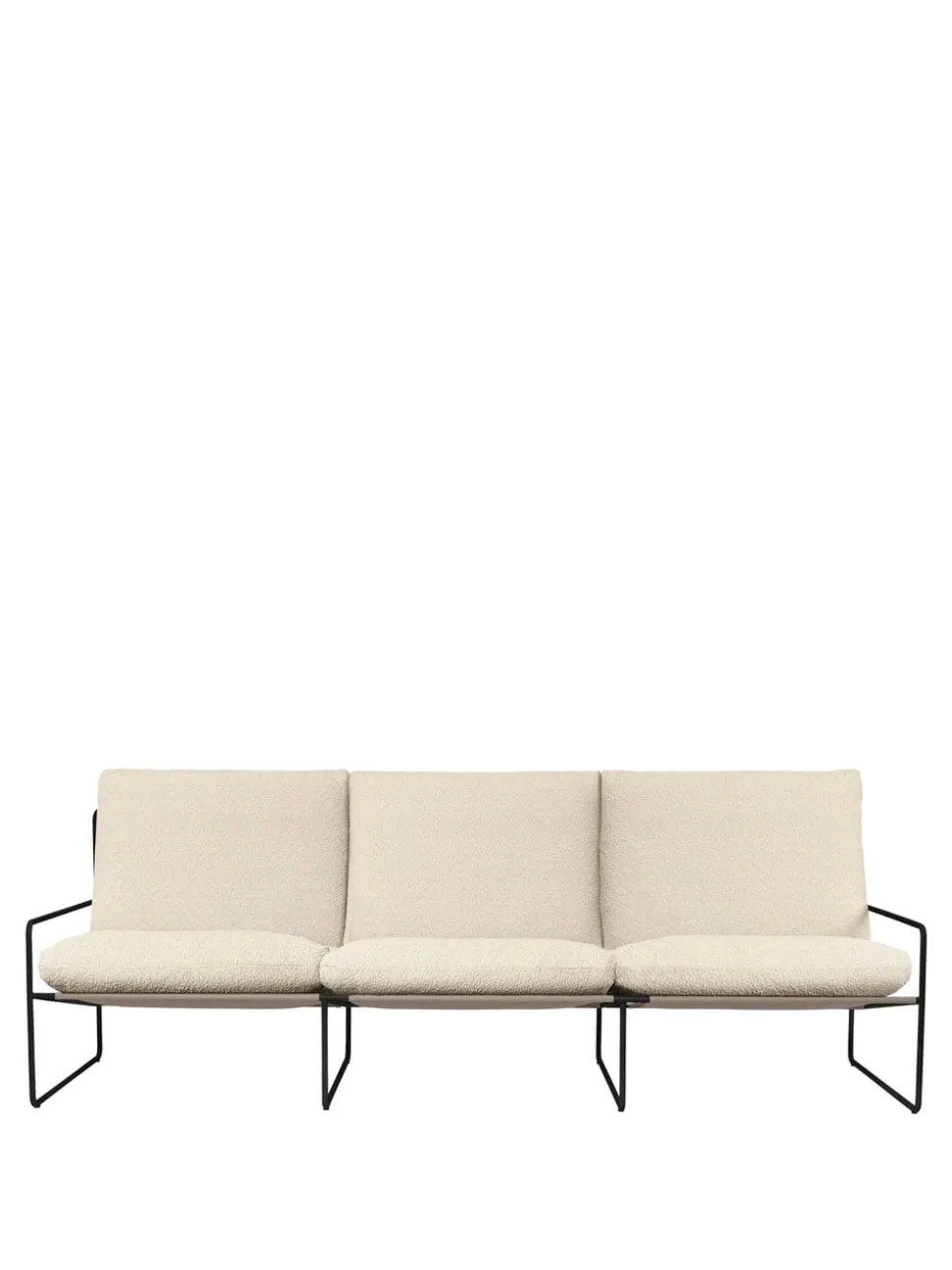 Der Desert 3-Sitzer Pure Bouclé von verbindet elegantes Design mit Funktionalität und Komfort für den Außenbereich. Das geräumige Sofa hat ein modernes, minimalistisches Design mit klaren Linien und einem leichten, pulverbeschichteten Stahlrahmen. Die weichen Kissen sind mit einem exklusiven Bouclé gepolstert, der speziell behandelt wurde, um Wasser, UV-Strahlen und Flecken zu widerstehen, so dass Sie den Komfort in Innenräumen auch im Freien genießen können. Die strukturierte Oberfläche verleiht ihm Tiefe und taktile Eleganz, während die neutrale Farbpalette wunderbar mit der natürlichen Umgebung harmoniert.