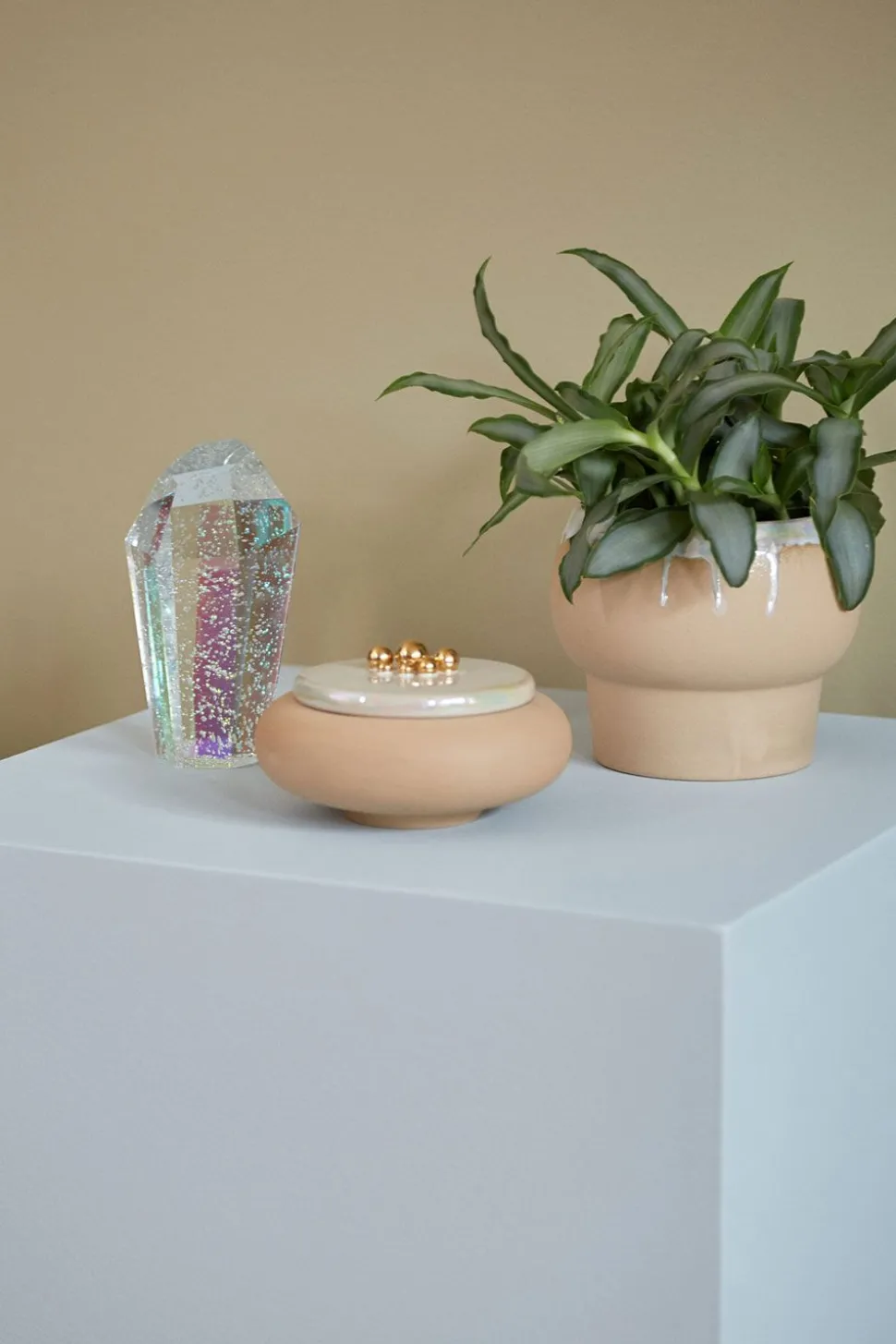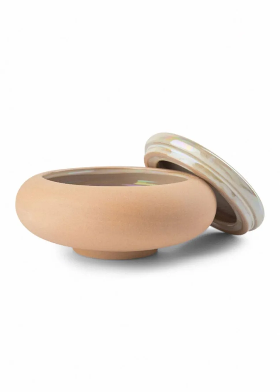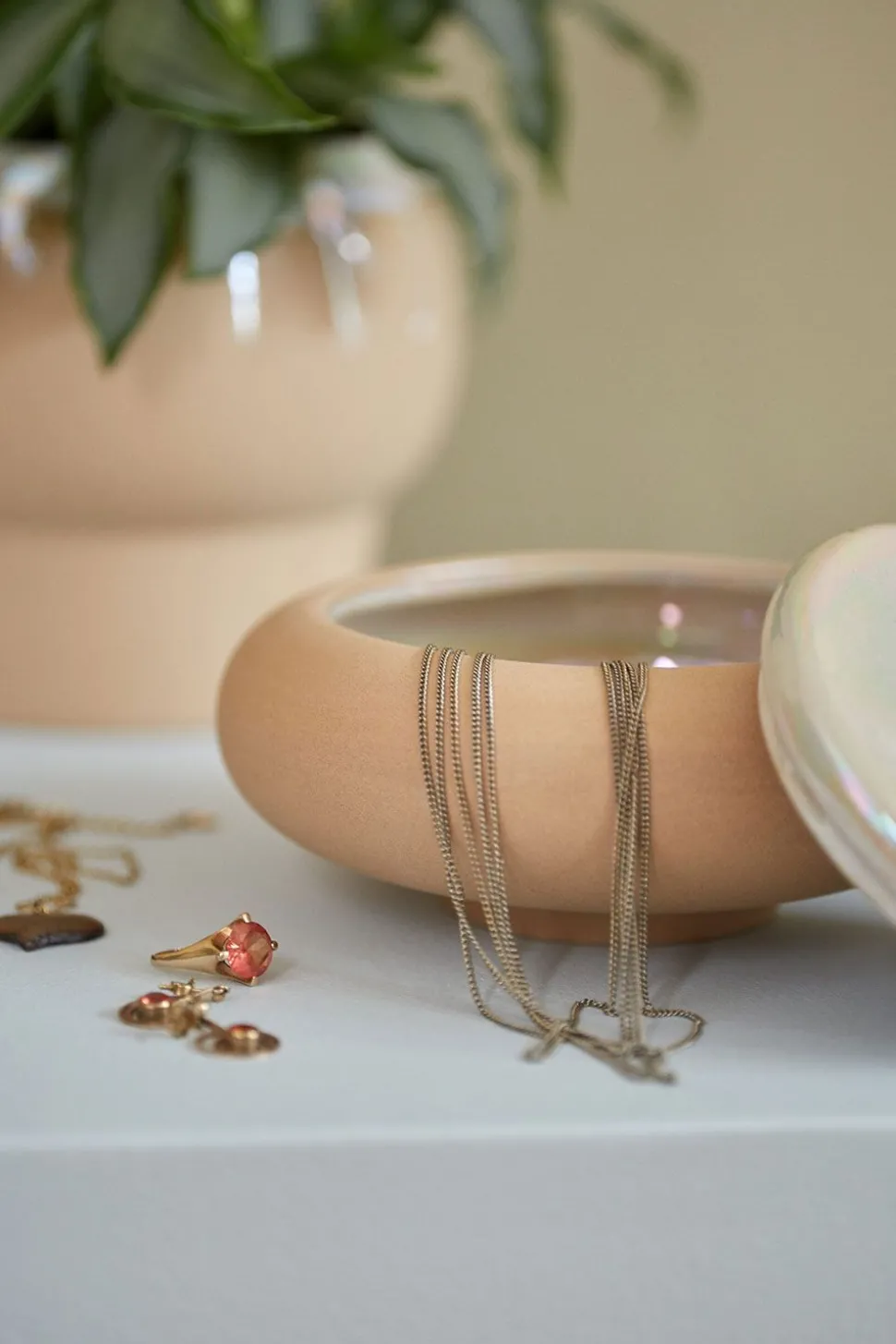 Die Wüstenserie der dänischen aus zarter Grobkeramik, innen mit feinster Perlmutt – oder Perlmutt – reflektierender Glasur glasiert. Perfekt für die Aufbewahrung von Schmuck, Pflanzen und anderen Dingen im Haus. In mehreren Varianten erhältlich.