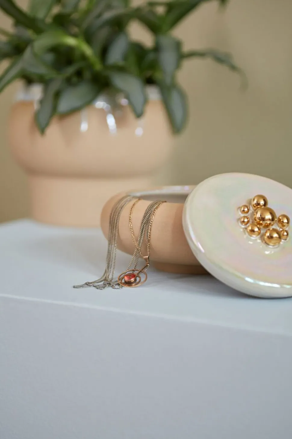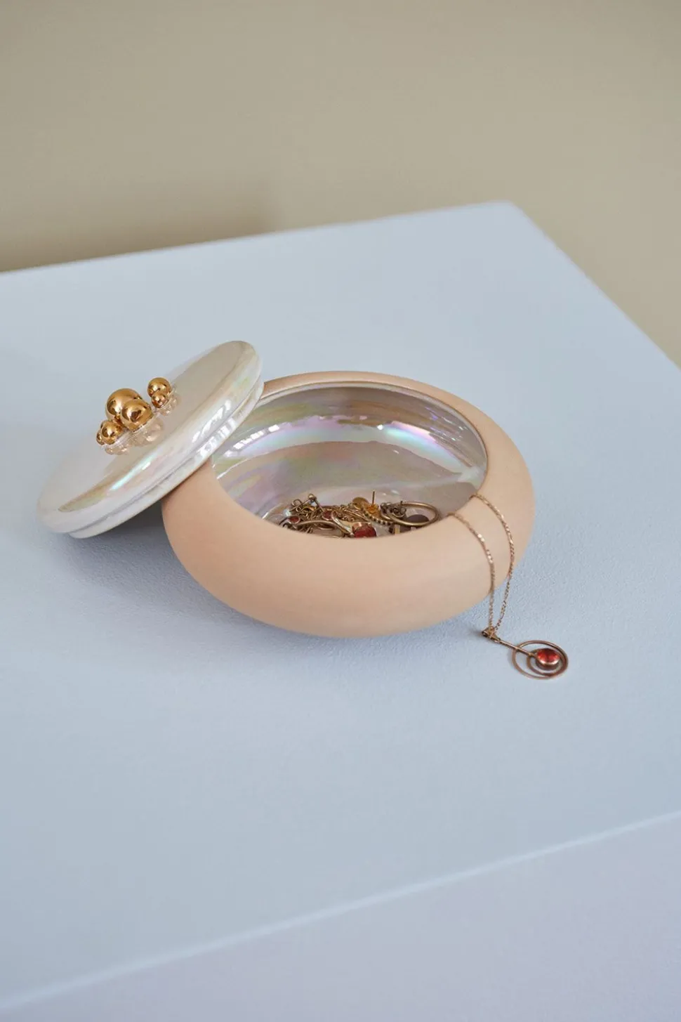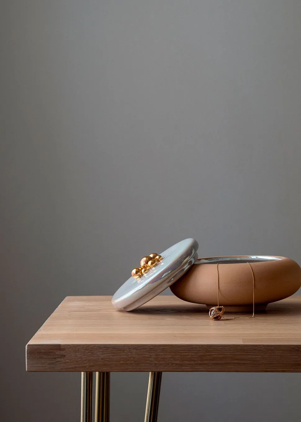 Die Wüstenserie der dänischen aus zarter Grobkeramik, innen mit feinster Perlmutt – oder Perlmutt – reflektierender Glasur glasiert. Perfekt für die Aufbewahrung von Schmuck, Pflanzen und anderen Dingen im Haus. In mehreren Varianten erhältlich.