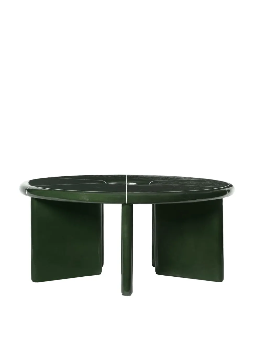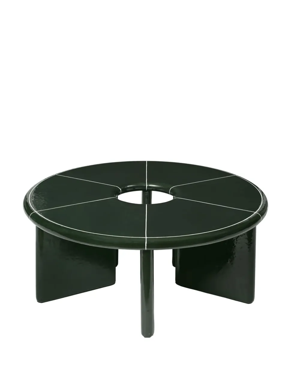 Der Deya Couchtisch von ist ein architektonisches Meisterwerk, das aus der Zusammenarbeit mit Utzon entstanden ist. Inspiriert von Jørn Utzons Haus Can Lis auf Mallorca, kombiniert der Couchtisch natürliche Materialien mit klaren Designdetails. Er ist aus robustem Faserbeton gefertigt und mit einer dunkelgrünen Glasur versehen, deren ungleichmäßige Textur durch kontrastierende, cremefarbene Fugen hervorgehoben wird. Die segmentierte Arbeitsplatte verleiht ihm eine geometrische Dimension, während die abgerundeten Kanten ein weiches und harmonisches Aussehen schaffen.