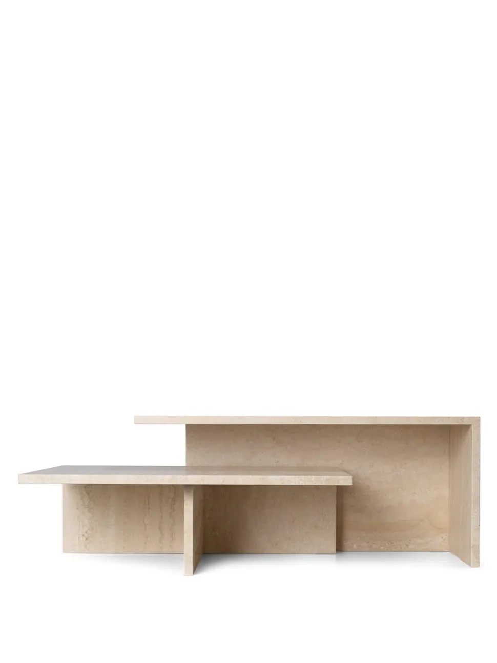 Die schönen Distinct Grande Duo Tische haben einen schönen japanischen Minimalismus, der aus Travertin gefertigt ist und den architektonischen Ausdruck unterstreicht. Sie bestehen aus zwei separaten Tischen, die zusammen auf verschiedenen Ebenen ein zusammenhängendes Möbelstück bilden, aber auch separat in Ihrem Zuhause verwendet werden können – Sie haben die Wahl.