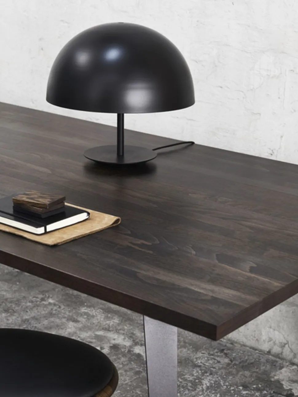 Schöne Kuppel-Lampe, die von ist. Es gibt eine Tischlampe, die schwarz ist. Die Mate Dome-Lampe wurde von Todd Bracher entworfen. Es ist eine schöne und gute Lampe, die auf dem Schreibtisch stehen kann.