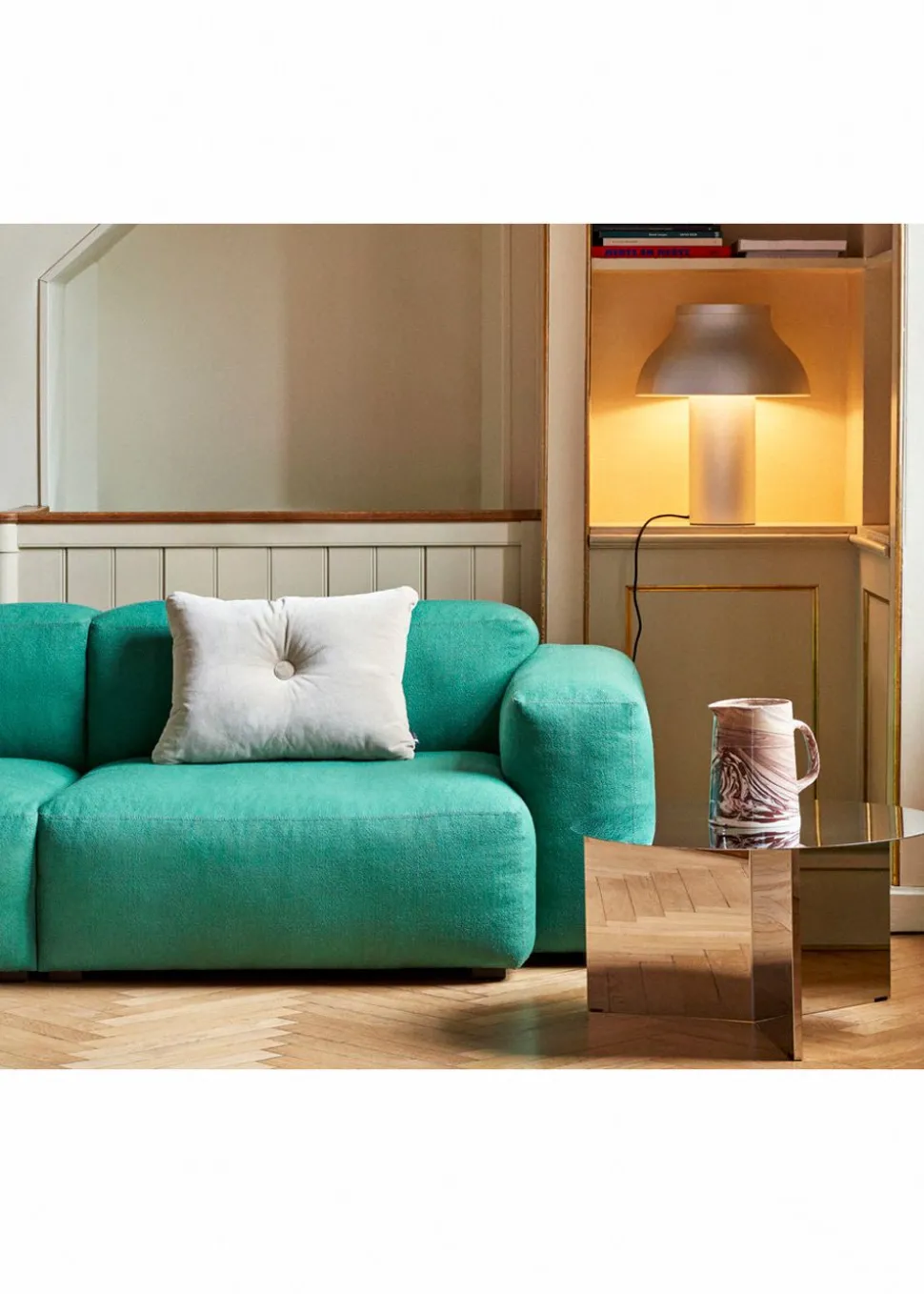 DOT Cushion von ist mit seinem einfachen, bekannten Design nach und nach zu einem lieben Mitglied vieler Häuser auf der ganzen Welt geworden. Das leichte rechteckige Kissen ist mit einem weichen Wollbezug gepolstert, der dem Kissen einen extravaganten und raffinierten Look verleiht, und natürlich hat es den ikonischen „Punkt“-Knopf in der Mitte, der einen verspielten und einzigartigen Look erzeugt.