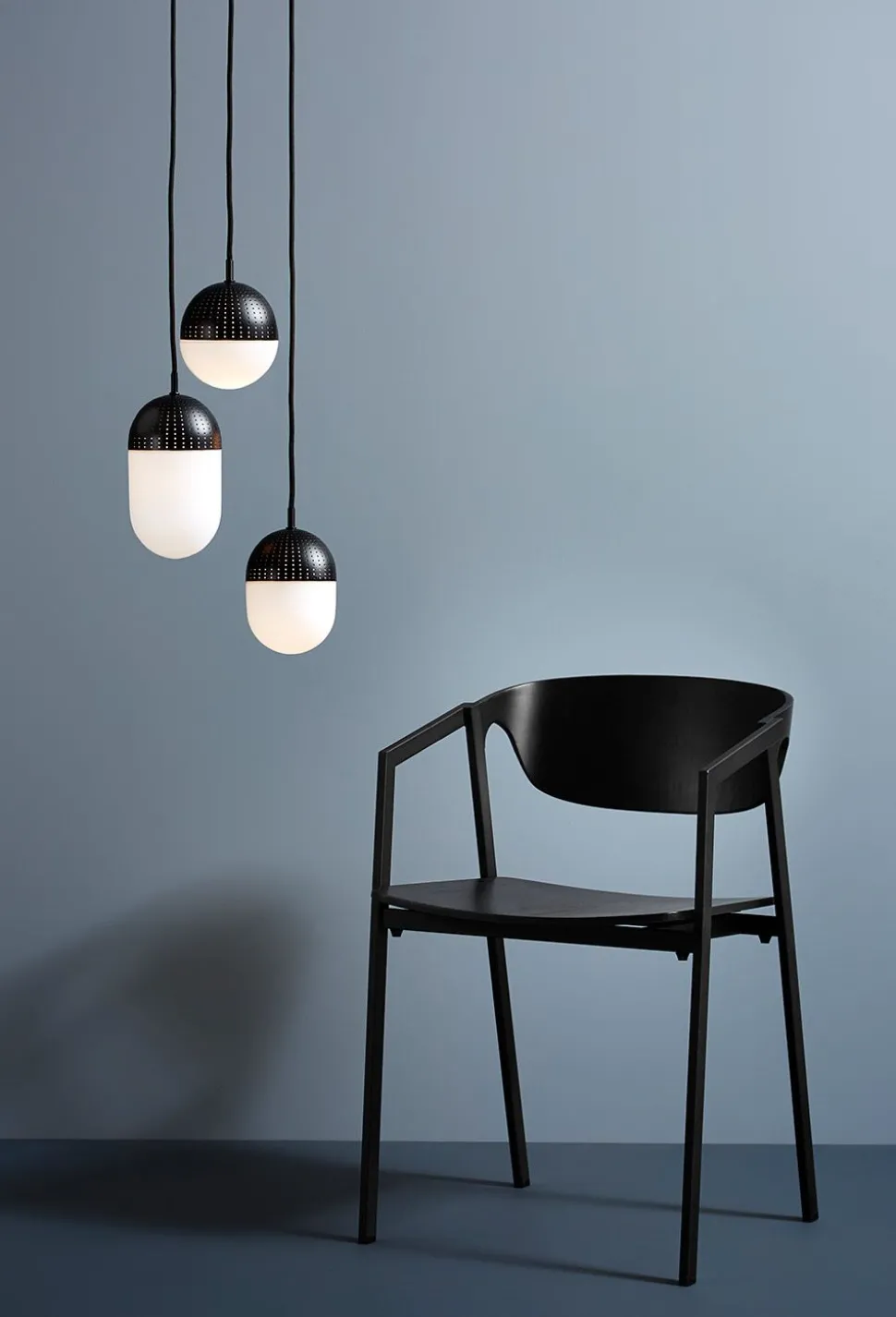 Die Dot-Pendelserie wurde von Rikke Frost entworfen. Beim Entwurf der Leuchte ließ sich Rikke Frost von dem Muster inspirieren, das das Licht erzeugt, wenn es durch die kleinen Löcher des perforierten Metalls scheint. Die Rauheit des perforierten Metalls kontrastiert wunderbar mit der Glätte des Opalglases. Die Pendelleuchte ist in drei verschiedenen Größen erhältlich und kann alleine hängen oder sich in Gruppen ergänzen.
