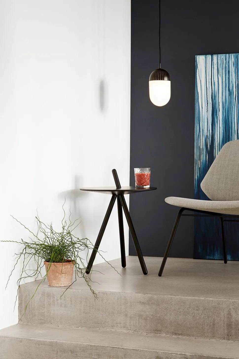 Die Dot-Pendelserie wurde von Rikke Frost entworfen. Beim Entwurf der Leuchte ließ sich Rikke Frost von dem Muster inspirieren, das das Licht erzeugt, wenn es durch die kleinen Löcher des perforierten Metalls scheint. Die Rauheit des perforierten Metalls kontrastiert wunderbar mit der Glätte des Opalglases. Die Pendelleuchte ist in drei verschiedenen Größen erhältlich und kann alleine hängen oder sich in Gruppen ergänzen.
