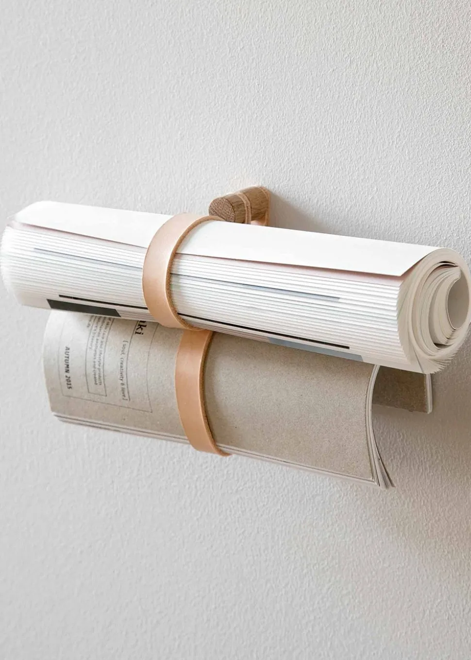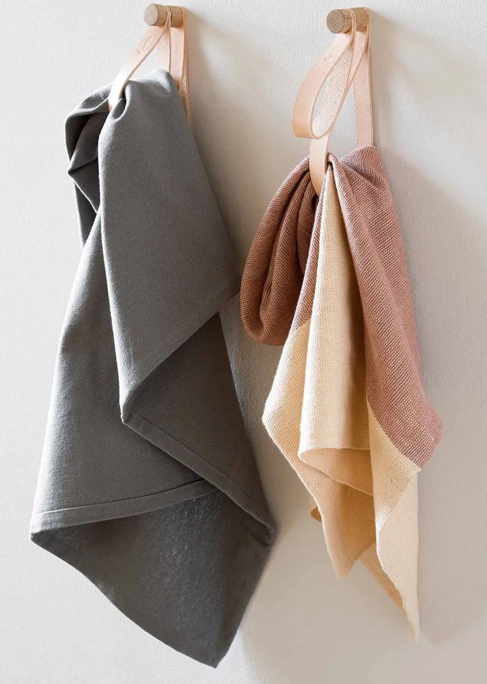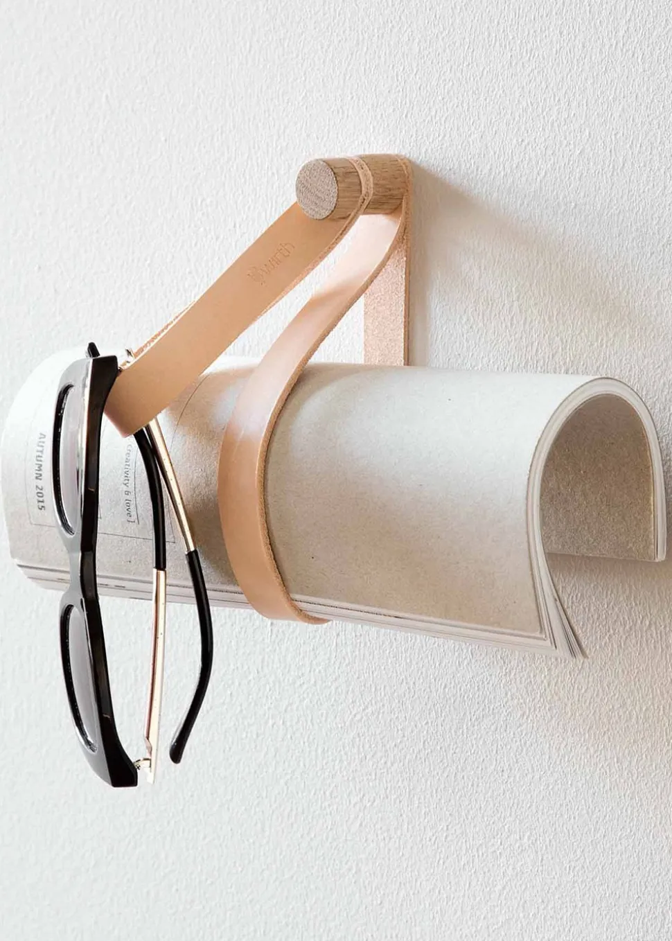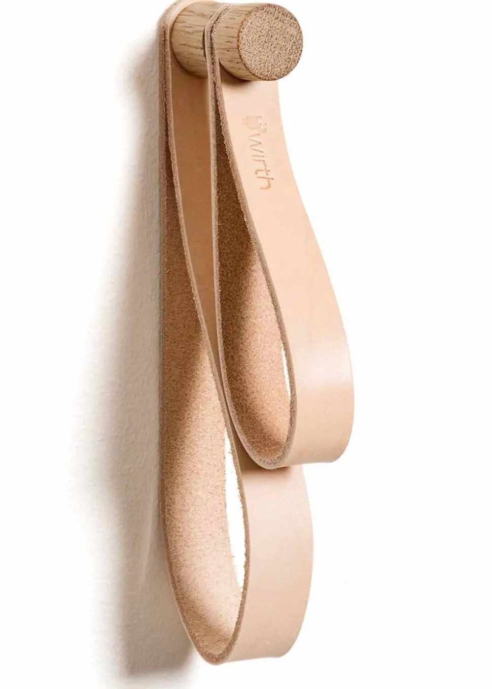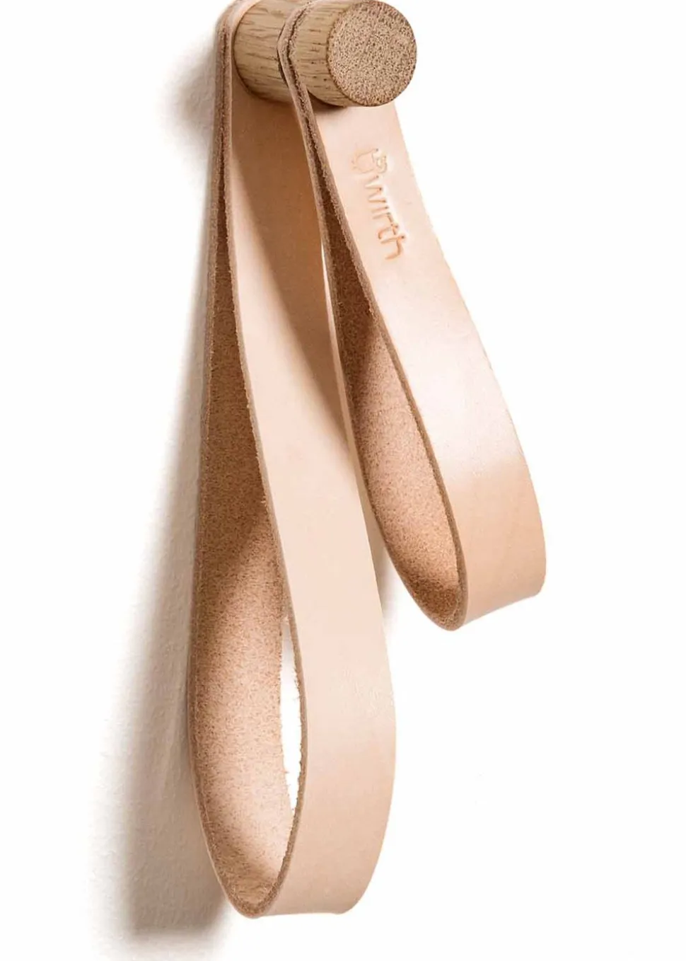 Double Loop wird von hergestellt. Double Loop besteht aus einem Eichenhaken mit zwei montierten Lederringen, die allein oder zusammen mit anderen in einer Garderobe aufgehängt werden können. Der Haken ist lang genug, um etwas daran zu hängen.