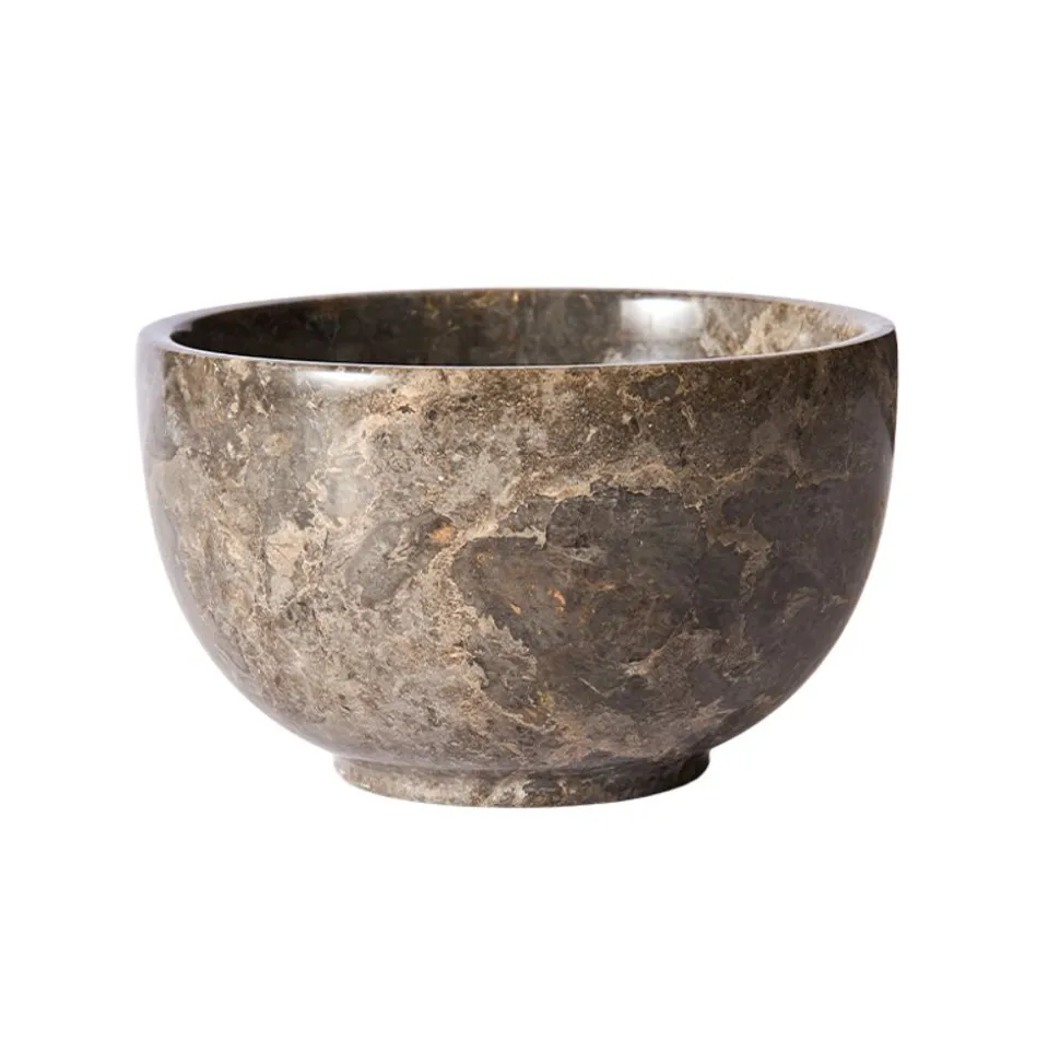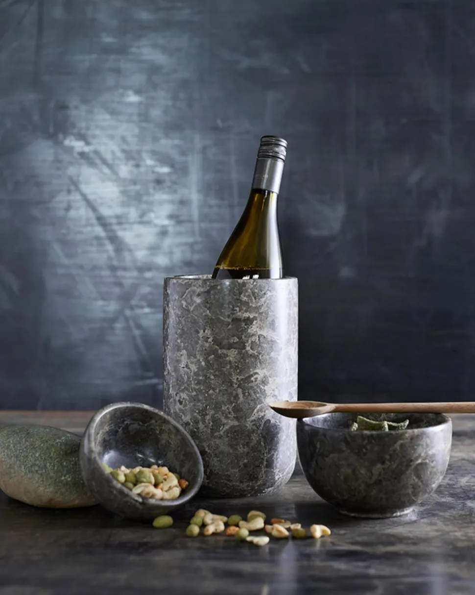 Dowa ist eine exklusive Serie von Marmor-Elementen, die mit einem visuell beeindruckenden Ausdruck geschaffen wurden, der jedem Haus Luxus und Charakter verleiht. Als fesselndes und natürliches Material, das die Blicke auf sich zieht, strahlt Marmor Eleganz und Robustheit aus und verleiht der Einrichtung oder dem gedeckten Tisch zeitlose Schönheit. Die Dowa-Schale ist ein stilvolles und fesselndes Stück Natur, das ein natürliches und exklusives Ambiente schafft. Die Schale lässt sich wunderbar in Küchen- und Tischdekorationen integrieren oder als dekoratives Element in der Inneneinrichtung verwenden. Die Dowa-Schale ist aus grauem und braunem Marmor gefertigt. Die natürlichen Farb- und Strukturunterschiede machen jedes Produkt zu einem Unikat und bilden einen schönen Kontrast zu anderen Materialien auf dem gedeckten Tisch. Bitte beachten Sie: Da Marmor ein natürliches Material ist, kann es von Produkt zu Produkt zu leichten Abweichungen kommen. Die Schale ist in zwei Größen erhältlich. Nicht spülmaschinenfest. Stattdessen sollte das Produkt von Hand mit einer neutralen Seife gereinigt werden, da starke und säurehaltige Seifen den natürlichen Marmor beschädigen können.