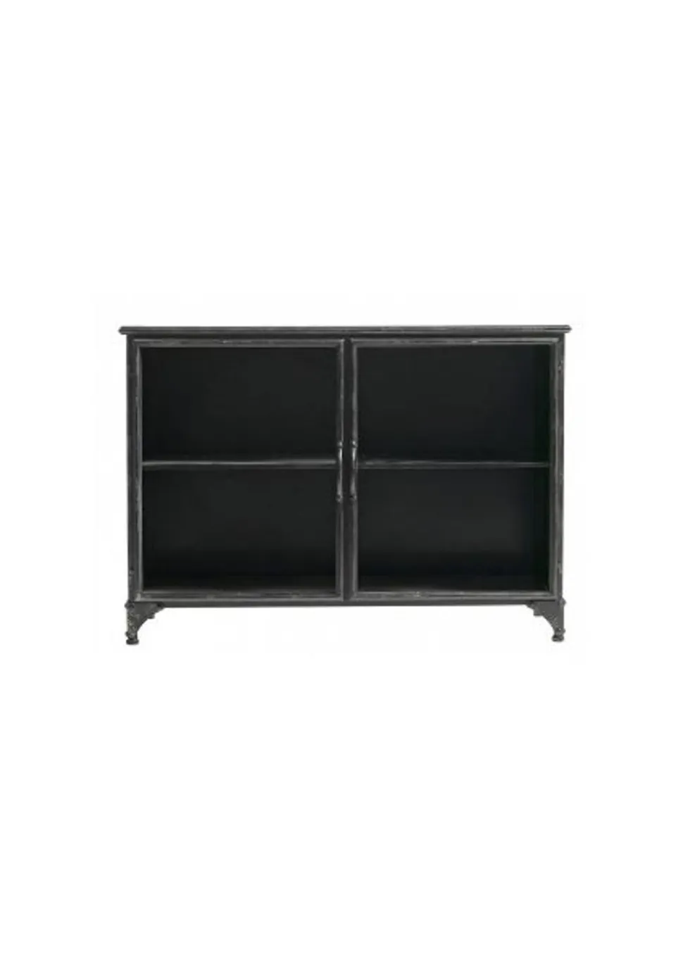 Das schöne Sideboard DOWNTOWN von besteht aus einer schwarz lackierten, patinierten Eisenoberfläche. Das Sideboard hat 1 Innenboden und 2 Glastüren mit Pin-Lock-System. Bitte beachten Sie, dass das Produkt teilweise handgefertigt ist und daher Unregelmäßigkeiten und Abweichungen in Farbe, Ausführung und Größe auftreten können, was Teil des einzigartigen Aussehens des Produkts ist.