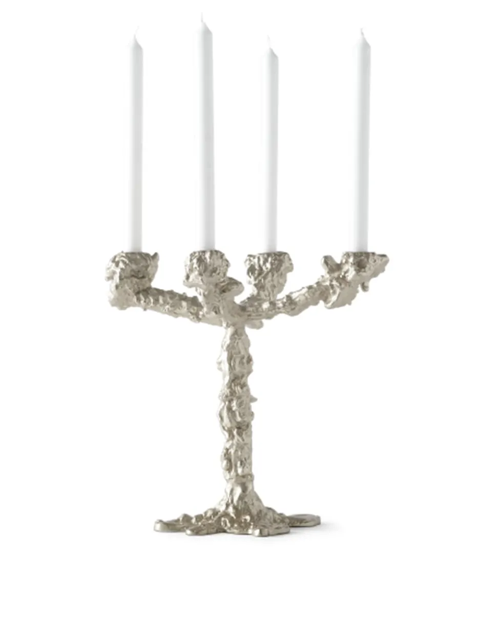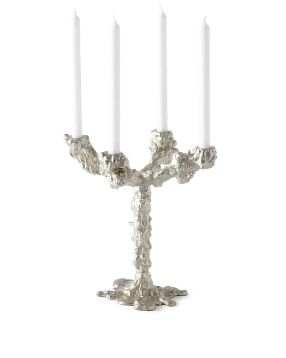 Der Drip Candle Holder 4-Arms von , entworfen von Pascal Smelik, ist ein Kunstwerk in Form eines Kerzenhalters. Gefertigt aus galvanisiertem Aluminium, ist jede Biegung und Kurve einzigartig geformt und verleiht dem Halter ein dramatisches, skulpturales Aussehen. Das Design spiegelt Smeliks Faszination für Deformität wider und unterstreicht die verführerische, fast theatralische Erscheinung von Drip. Diese vierarmige Stange verbindet Funktionalität mit Kunst und ist ein raffinierter Blickfang in jedem Raum.