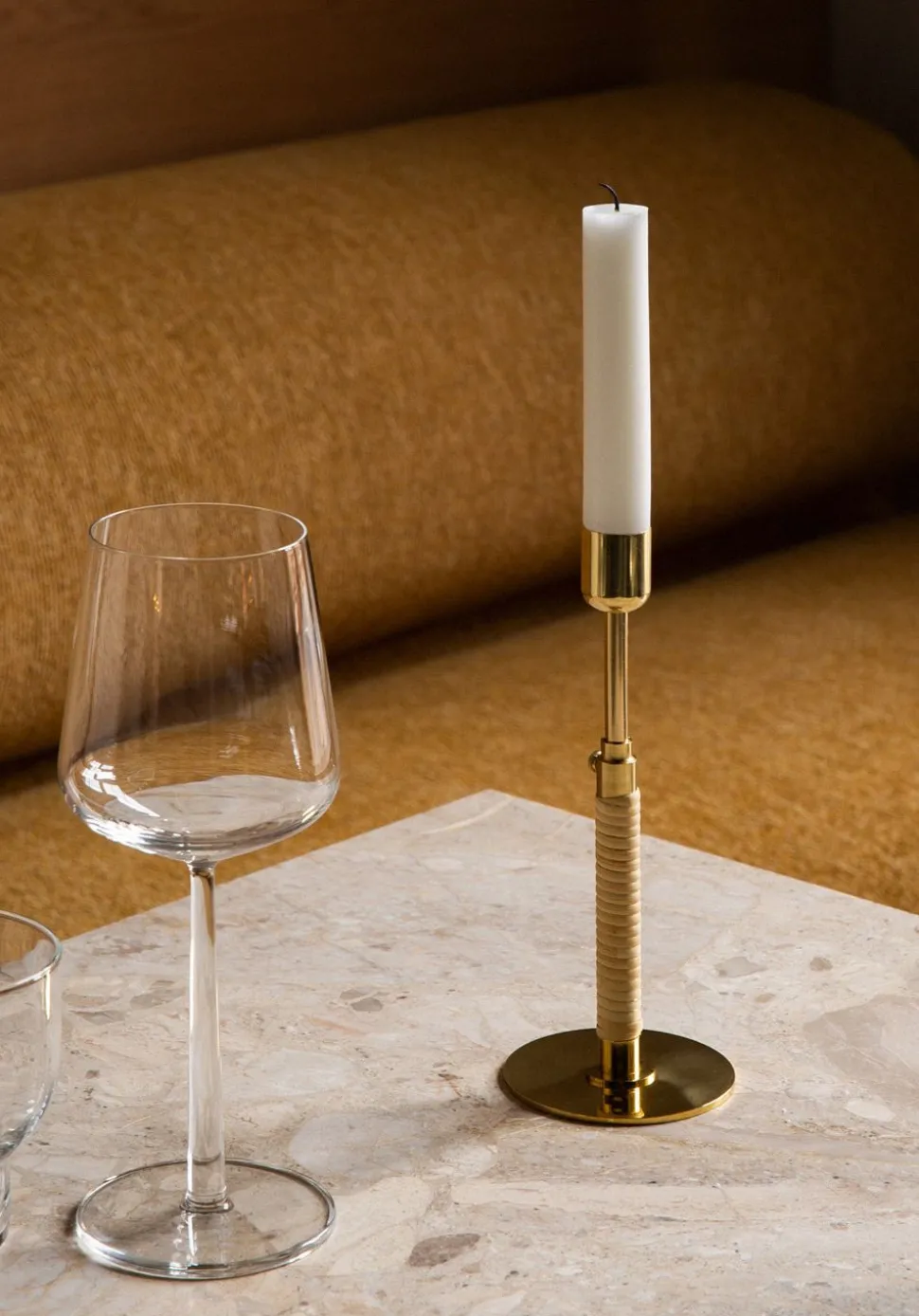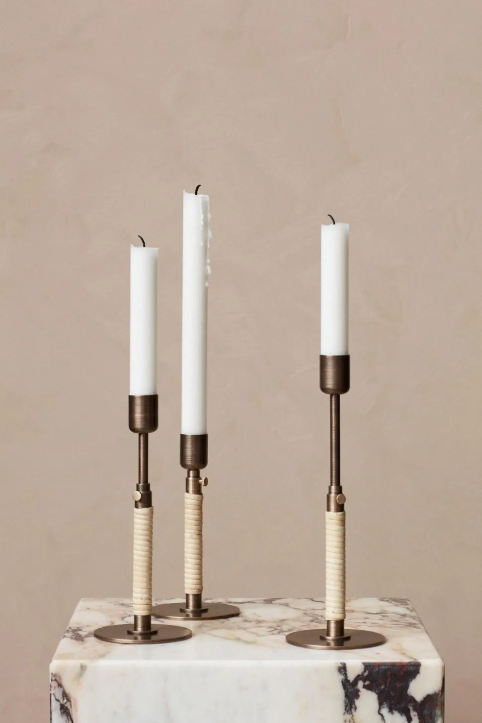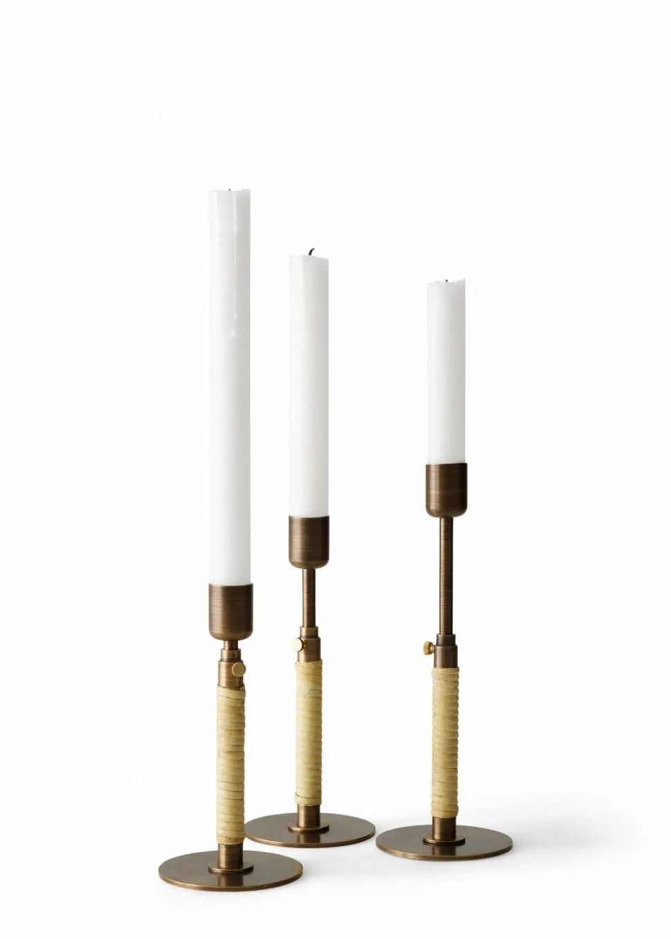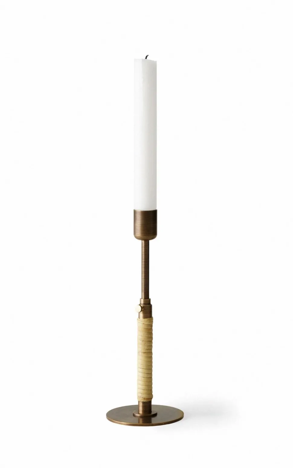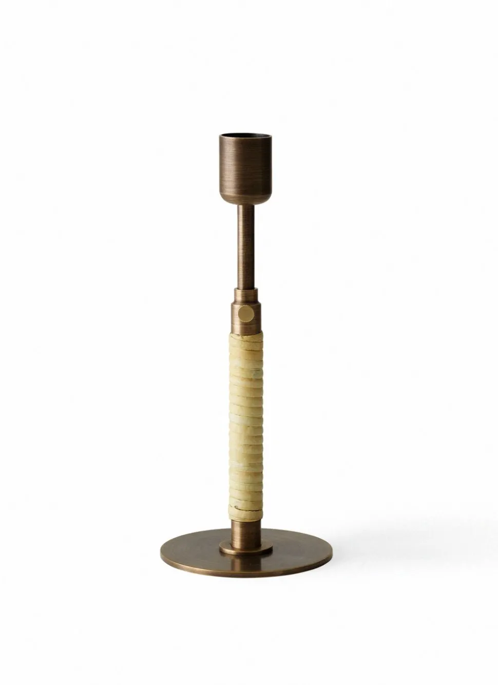 In einer ästhetischen Mischung aus femininem Messing und rustikalem Rattan ist die Duca-Bühne von Krøyer Sætter Lassen ein wunderschönes skulpturales Einrichtungsstück. Der lateinische Name „Duca“ bedeutet „ausdehnen“. Die kleine Schraube an der Oberseite ermöglicht es, den Ständer auf verschiedene Höhen auszudehnen, wodurch er universell einsetzbar ist. Die Stange kann in einer Gruppe mit verschiedenen Höhen und Ausführungen arrangiert werden oder allein stehen, wo sie ebenfalls die Aufmerksamkeit auf sich zieht.