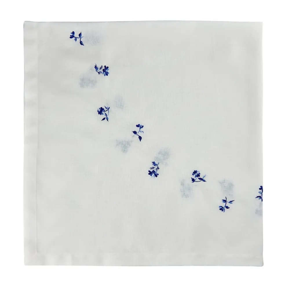 Schönes Tischtuch mit blauen klassischen Blumen. Perfekt für einen schönen Sommertag oder besondere Anlässe. Genäht aus echtem Flaggentuch mit gestickten blauen Blumen. Die Blumentischdecke ist Teil der klassischen Nordic Way of Celebration-Serie von Langkilde & Søn mit hochwertigen Stofftischdecken und -servietten.