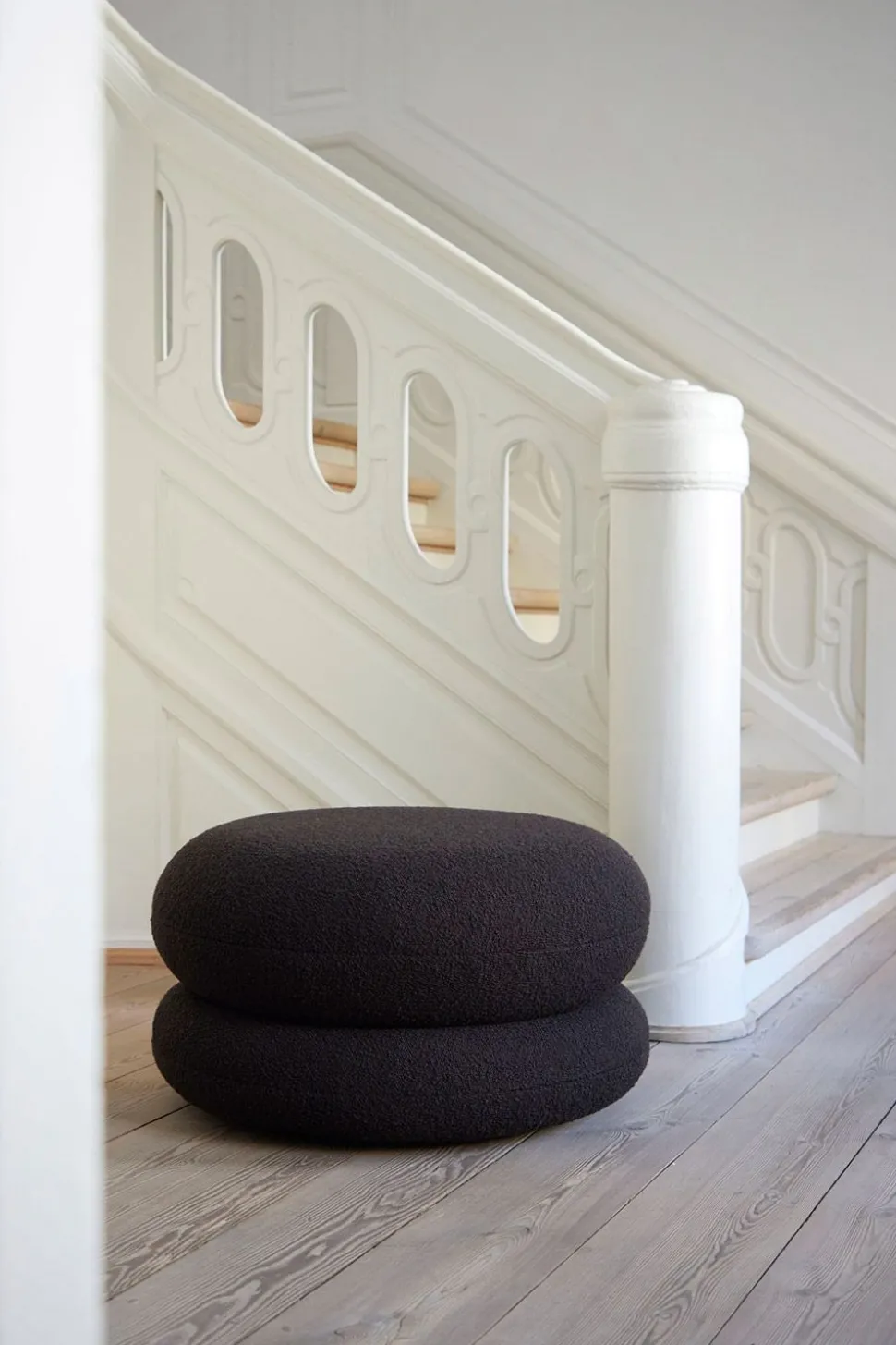 Easy Puff, entworfen von der dänischen Design-Ikone , ist eine seiner markantesten und einzigartigsten Kreationen. Das Bodenkissen besteht aus zwei runden, hockerähnlichen Kissen, die zu einer Sitzfläche gestapelt werden, ähnlich wie beim Easy Chair. Die schlichte Komposition eröffnet eine neue Sitzecke oder einen Platz zum Ausruhen der Füße im Wohnzimmer.
