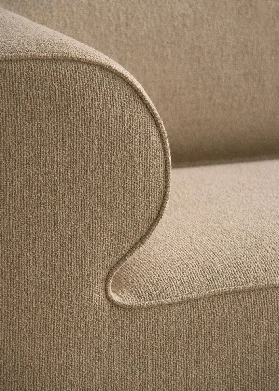 Das von Norm Architects für im Jahr 2021 entworfene Eave Modular Sofa, 86, 2 Sitzer, Konfiguration 1 ist ein innovatives Sofa, das von architektonischen Elementen inspiriert ist, insbesondere von den Dachrinnen, die dem Möbelstück seinen Namen gaben. Die Besonderheit des Sofas sind die inneren „Traufen“ – gebogene, gepolsterte Armlehnen, die dem Sofa seinen unverwechselbaren Charakter verleihen. Hergestellt aus Kiefer, Sperrholz, MDF und Stahl, mit Federn, HR-Schaum und sorgfältig ausgewählten Polstern, ist das Sofa sowohl robust als auch äußerst bequem. Eave ist das ideale Sofa, das zum Entspannen einlädt und einen perfekten Sitzwinkel bietet, nicht nur für den Gebrauch zu Hause, sondern auch für Büros oder öffentliche Räume.