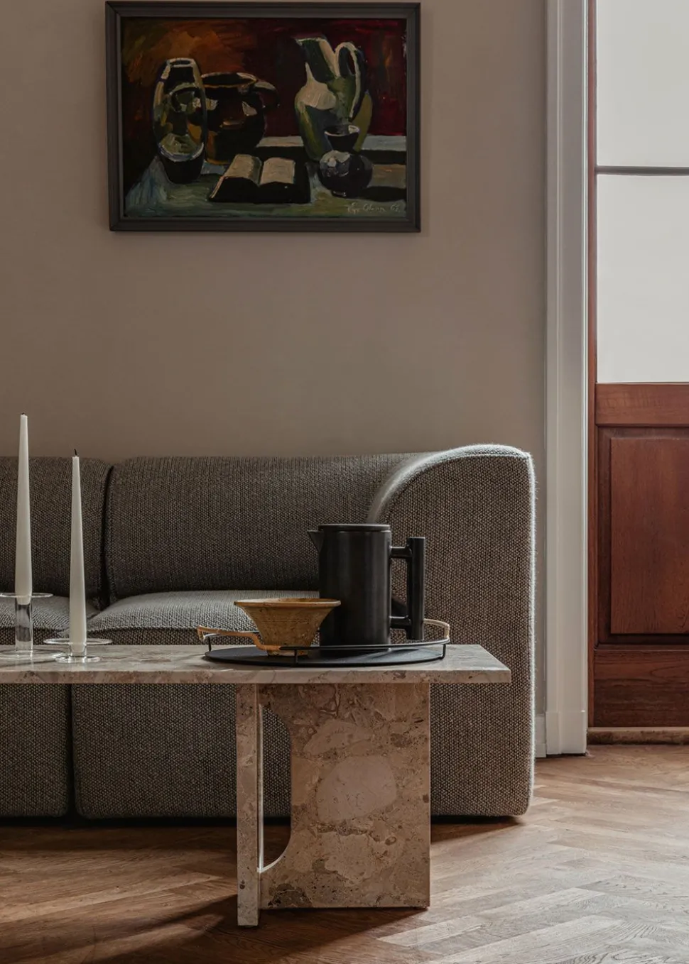 Das modulare Design des Sofas macht es äußerst vielseitig und anpassungsfähig an jede Raumgestaltung. Es eignet sich sowohl zum Entspannen als auch zum Arbeiten, wobei der Sitzwinkel zu aktiver Beschäftigung anregt. Kombinieren Sie diese 3-Sitzer-Konfiguration mit anderen Modulen aus der Eave-Reihe, um ein zusammenhängendes und harmonisches Interieur zu schaffen. Kombinieren Sie es mit den eleganten Couchtischen und Beleuchtungslösungen von , um den Raum mit einem skandinavischen Touch zu vervollständigen.