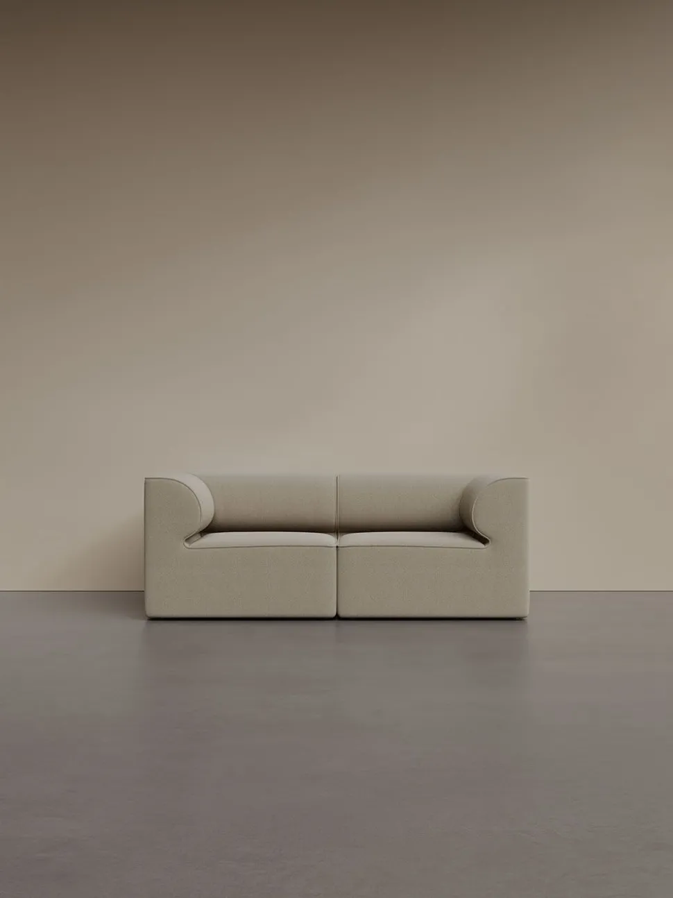 Das Eave Modular Sofa, 96, 2-Sitzer, Konfiguration 1 von , entworfen von Norm Architects im Jahr 2023, ist ein Meisterwerk des modernen Designs. Inspiriert von der Architektur, hat das Sofa seinen Namen von der „Traufe“ – den unteren Rändern eines Daches, das über eine Wand hinausragt. Mit seinen inneren „Traufen“ – geschwungenen gepolsterten Armlehnen – schafft es einen einzigartigen und ausdrucksstarken Charakter. Die Konstruktion besteht aus Kiefer, Sperrholz, MDF, Stahl (Federn), HR-Schaum, Polsterung, Kunststoff und Stahl, was außergewöhnlichen Komfort und Langlebigkeit garantiert.