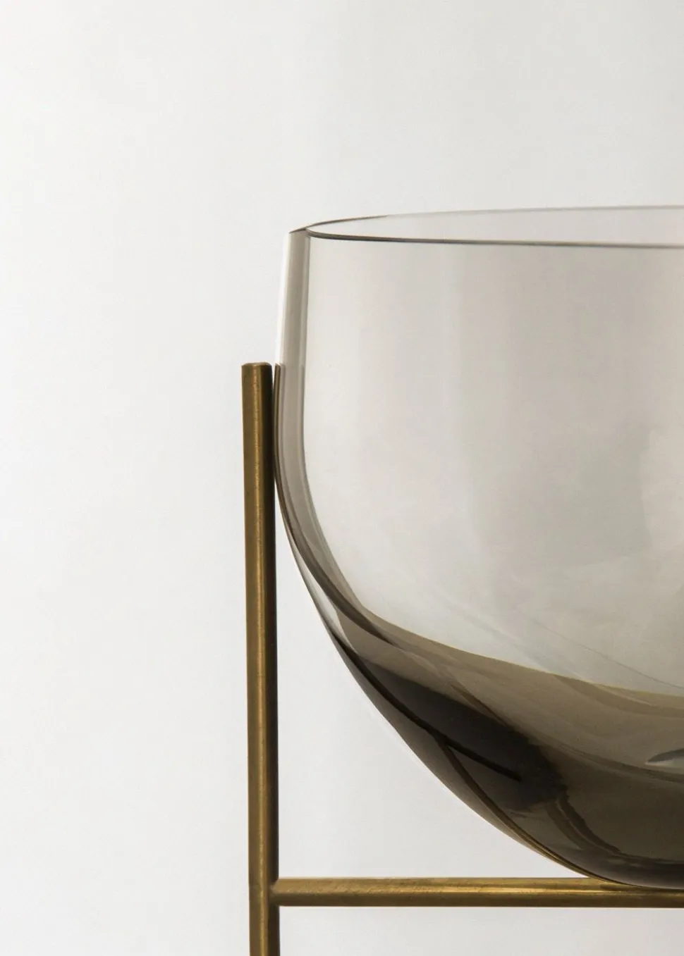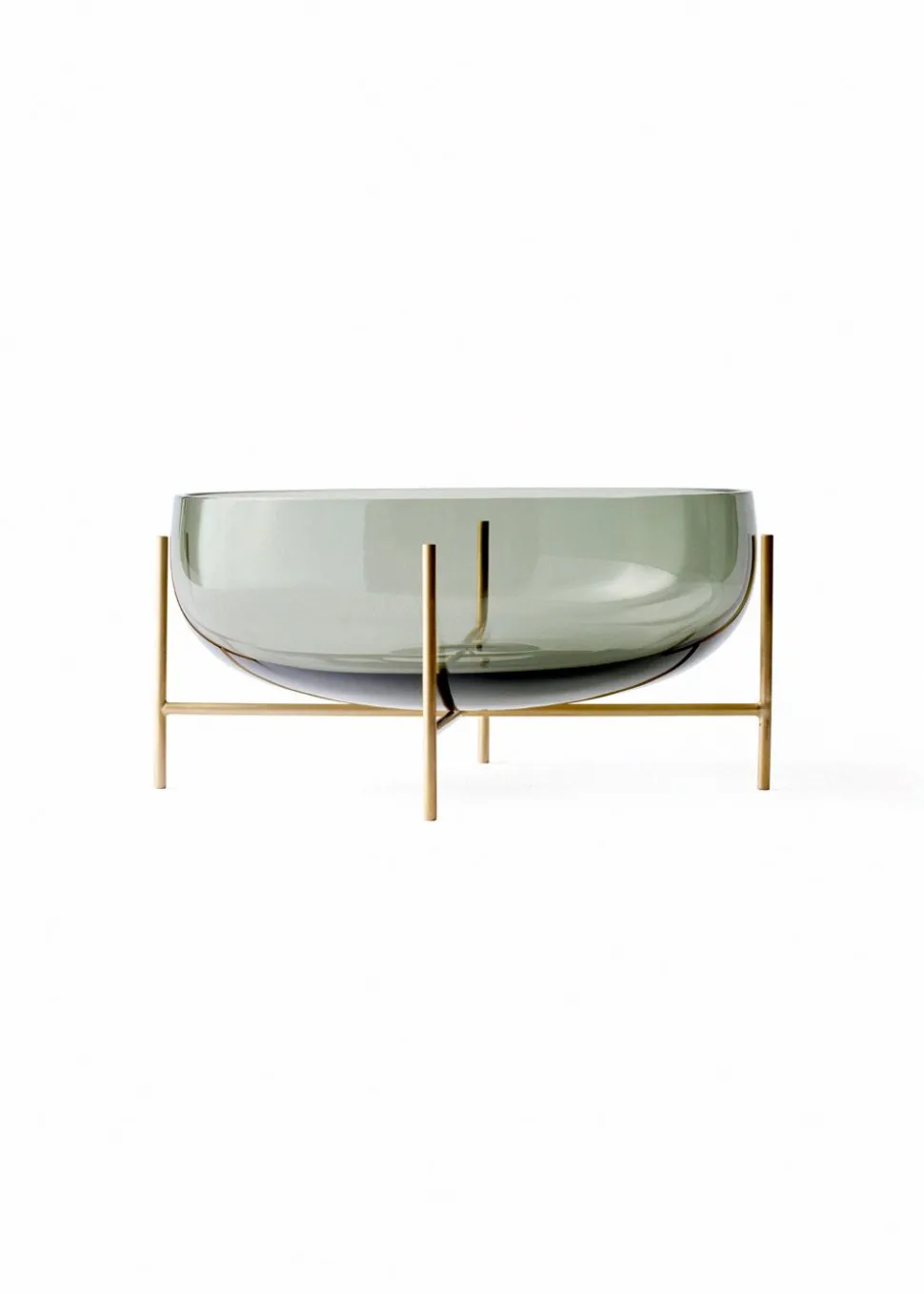 Èchasse Schale von Danish mit einem köstlichen Design, inspiriert von Laborglas, und schönen Materialien, gibt dem Konzept „Mittelstück“ eine ganz neue Dimension. Das farbige Glas kontrastiert harmonisch mit dem schlichten Messingrahmen und verleiht der Vase einen eleganten Schwebeeffekt. Das schlichte Design von Èchasse macht sie zur idealen Ergänzung für jedes Zuhause, perfekt als Obstschale oder Mittelstück in der Küche oder im Eingangsbereich.