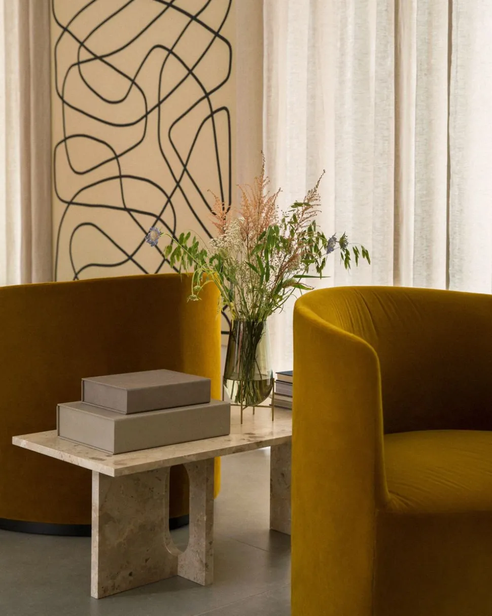 Èchasse Vase aus dem dänischen Hause , mit einer schönen, von Laborglas und schönen Materialien inspirierten Formensprache, die der klassischen Blumenvase ein ganz neues Leben verleiht. Das Rauchglas steht in harmonischem Kontrast mit dem schlichten Messingrahmen, der der Vase einen eleganten Fliegeffekt verleiht. Das schlichte Design von Èchasse macht sie zur idealen Vase in jedem Zuhause, perfekt für einen kleinen Blumenstrauß im Wohnzimmer, auf dem Esstisch oder im Schlafzimmer.
