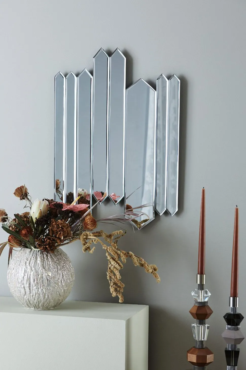 Der Rapportspiegel aus dem ist ein sehr schöner und minimalistischer Spiegel mit 8 Spiegelglasscheiben mit Facetten. Der Rapportspiegel ist aus dickem, klarem Spiegelglas hergestellt. Die 8 Facetten geben dem Raum eine zusätzliche Dimension. Der Spiegel hat auf der Rückseite einen Metalldraht und kann daher leicht an die Wand gehängt werden.
