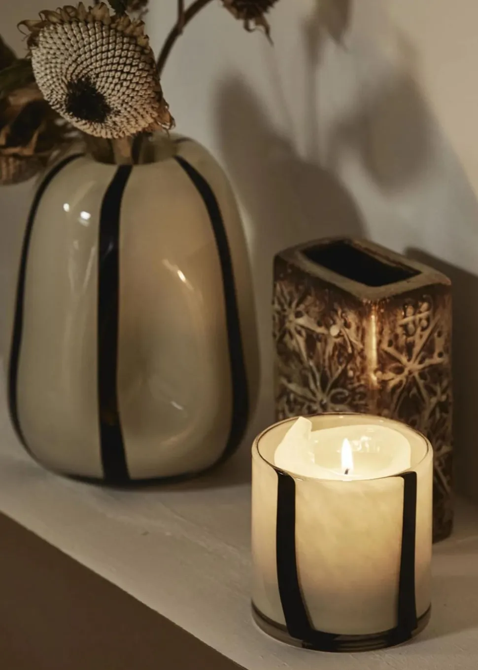 Edessa von ist ein Teelichthalter, der klassische Eleganz und subtilen Charme ausstrahlt. Dieser raffinierte Teelichthalter wurde mit äußerster Präzision gefertigt und ist eine wahre Hommage an die traditionelle Handwerkskunst. Das zarte Farbenspiel, das entsteht, wenn ein Teelicht darin brennt, schafft eine Atmosphäre der Wärme und Gemütlichkeit. Das feine Streifendesign von EDESSA fängt den Tanz des Lichts auf eine Weise ein, die jeden Raum in einen Ort der Ruhe und Schönheit verwandelt. Die Variationen im Muster der Streifen und die Dicke des Glases, die aus dem handwerklichen Prozess resultieren, verleihen jedem Teelichthalter seinen einzigartigen Charakter.