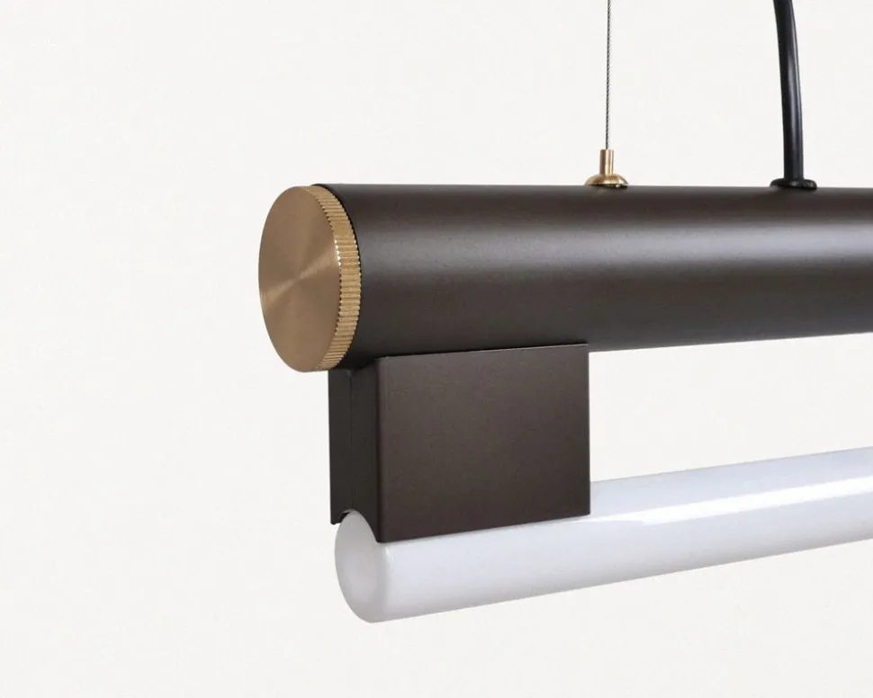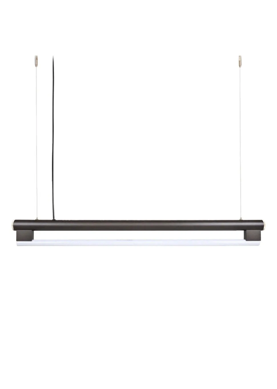 Die Eiffel Lamp Serie kombiniert das praktische, stilvolle Design mit einem industriellen Twist. Der dunkle mundgeblasene Stahl kontrastiert mit dem eleganten weißen Opalglas, das der Lampe ein weiches, diffuses Licht verleiht, das eine gemütliche Atmosphäre schafft. Schließlich ist sie mit raffinierten Messingdetails verziert, die als Schalldämpfer fungieren, sodass das Licht je nach Bedarf eingestellt werden kann.
