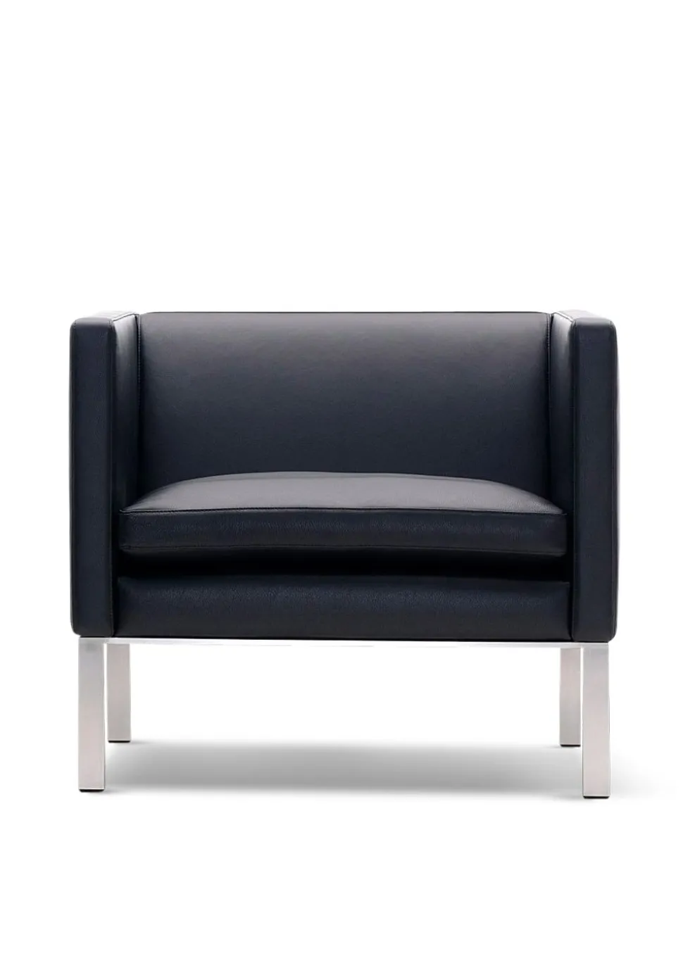 Die Sitzfläche des Stuhls ist mit klaren Linien gestaltet. Eine kubistische Form entsteht, indem die Rücken- und Armlehnen auf gleicher Höhe bleiben und die Kissen in passenden rechteckigen Formen gestaltet werden. Die richtigen Proportionen sorgen für Bequemlichkeit, sind aber vor allem in geselligen Umgebungen ideal, wo der Stuhl leicht mit dem ‚EJ50 Sofa‘ kombiniert werden kann. Der mit feinstem Leder gepolsterte Stuhl zeigt Erik Jørgensens Gespür für hochwertige Materialien und damit die Fähigkeit von , das Material mit handwerklichem Können von Weltklasse zu verarbeiten.