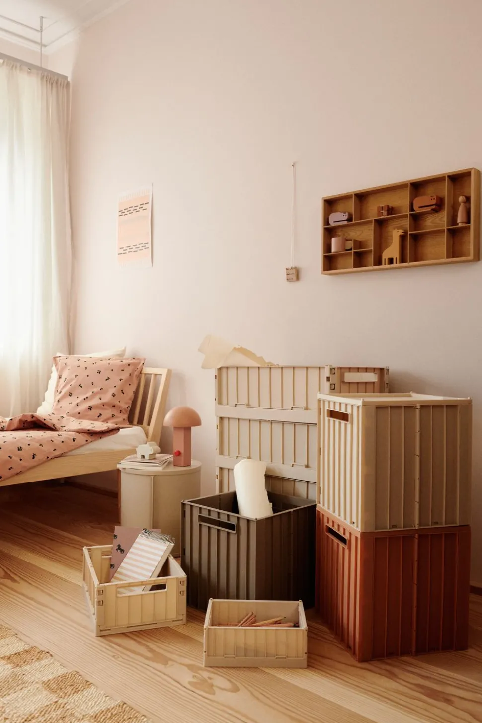 Die Aufbewahrungsbox ist sowohl faltbar als auch stapelbar, so dass sie bei Nichtgebrauch leicht zu verstauen ist. Kombinieren Sie sie mit anderen Liewood-Produkten, um einen funktionalen und spielerischen Raum zu schaffen, in dem Aufbewahrung und Design Hand in Hand gehen.