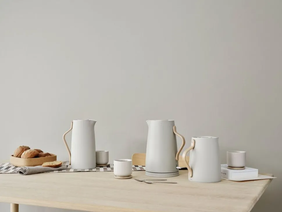 Emma Thermoskanne von Entworfen von dem dänischen Designerduo HolmbäckNordenttoft, das sich an der dänischen Designschule kennengelernt hat, an der beide ihren Abschluss gemacht haben, und das nun ein gemeinsames Designstudio betreibt. Die Thermoskanne ist eine Kombination aus stilvollem Design und praktischer Möglichkeit, Kaffee oder andere Heißgetränke auf Kaffeetellern zu Hause zu servieren. Zusammen mit einer schönen und praktischen Thermoskanne gibt es eine Auswahl an Farben, so dass Sie genau diejenige bekommen, die zu Ihrem Stil oder Ihrem Geschirr passt.