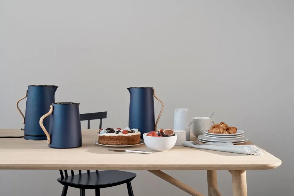 Emma Thermoskanne von Entworfen von dem dänischen Designerduo HolmbäckNordenttoft, das sich an der dänischen Designschule kennengelernt hat, an der beide ihren Abschluss gemacht haben, und das nun ein gemeinsames Designstudio betreibt. Die Thermoskanne ist eine Kombination aus stilvollem Design und praktischer Möglichkeit, Tee oder andere Heißgetränke auf Kaffeetellern im Haus zu servieren. Zusammen mit einer schönen und praktischen Thermoskanne gibt es eine Auswahl an Farben, so dass Sie genau diejenige bekommen, die zu Ihrem Stil oder Geschirr passt.