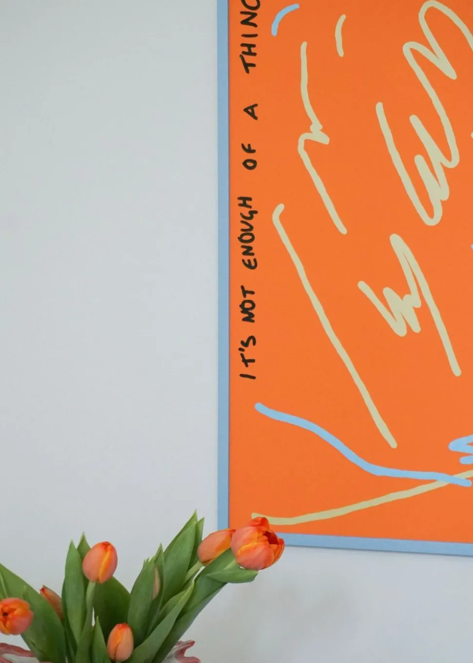 Das von der Künstlerin Jenny Beard entworfene Enough Of A Thing ist ein schönes und farbenfrohes Poster, das schöne Linien und Schattierungen kombiniert. Die orange Farbe bringt Wärme und Gemütlichkeit in Ihr Zuhause.
