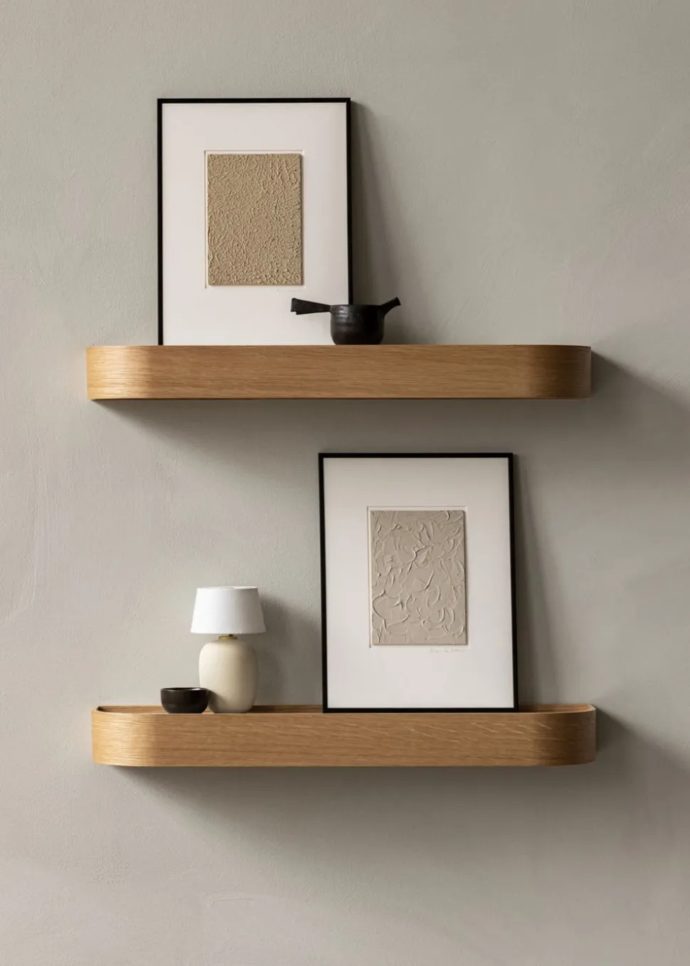 Mit seinen geschwungenen Kanten und seinem schlichten Look ist das Regal Epoch von die perfekte Ergänzung für Ihr Zuhause. Das Regal ist aus Eichenfurnier gefertigt und in zwei Ausführungen erhältlich. Das wandmontierte Design verleiht den Wänden einen natürlichen Touch und macht das Regal zu einem praktischen Ort, um den Flur aufzuräumen.