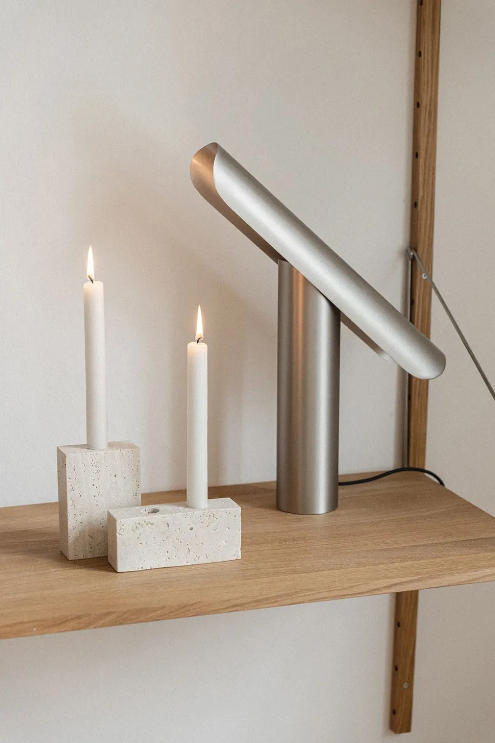 Der Epode Candle Holder von ist aus wunderschönem, rohem Travertin gefertigt, der mit seinen natürlichen Rissen und Unebenheiten jeden Kerzenhalter zu einem Unikat macht. Die schlichte Form und die natürliche Schönheit des Steins sorgen für einen zeitlosen und rohen Look, der vier Kerzen aufnehmen kann und Ihrer Einrichtung einen Hauch von Natur verleiht.