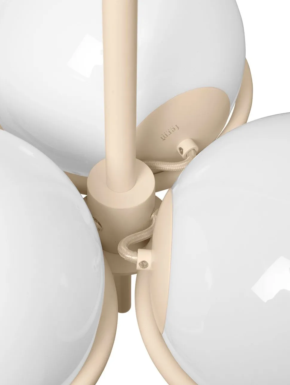- Material: Aus pulverbeschichtetem Eisen und weißem Opalglas mit 5 Metern farblich passender Stoffkordel.