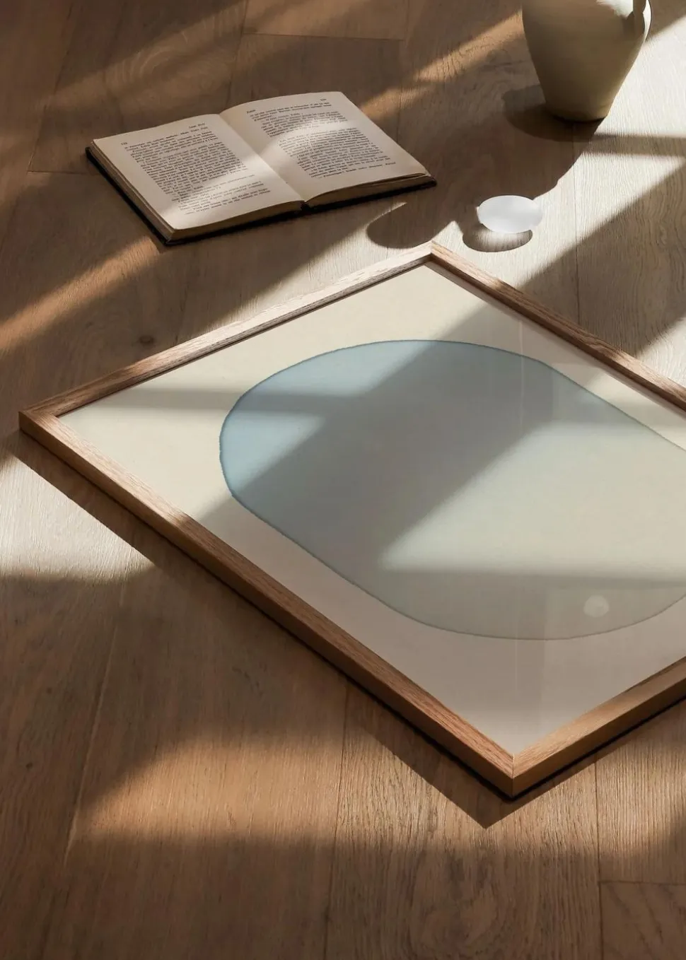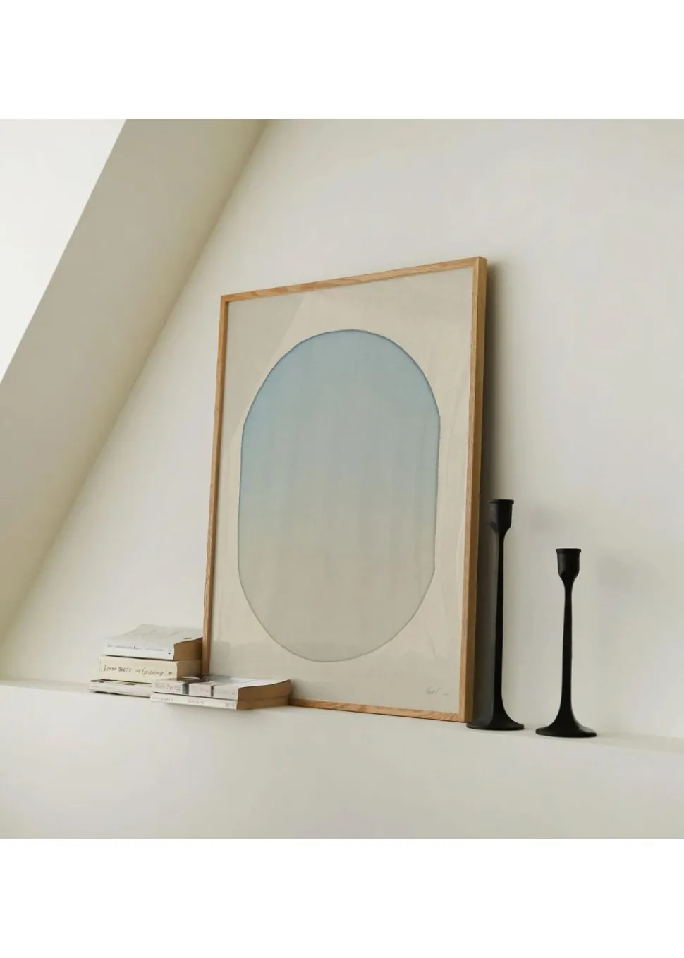 ESTRE #3 wurde von Harrt Studio entworfen. Das Plakat ist ein minimalistisches Plakat, bei dem nicht ein Motiv im Vordergrund steht, sondern ein Gefühl und ein Eindruck. Das Plakat ist daher offen für eine freie Interpretation. Die schöne pastellblaue Farbe nimmt langsam ab, was eine Dynamik erzeugt, und ist daher perfekt mit dem neutralen beigen Hintergrund des Plakats gepaart.