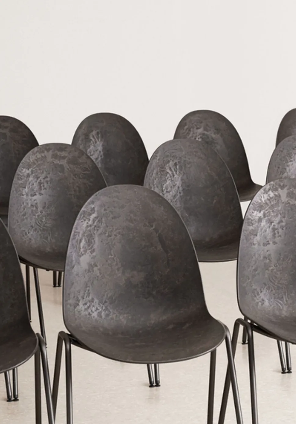 Dieser schöne Stuhl ist ein Entwurf von By Space Copenhagen. Die Stühle sind aus Circular Materials gefertigt. Auf diese Weise können Kunststoffabfälle mit Abfallstoffen auf Faserbasis verwertet werden. Der Stuhl passt perfekt in Ihr Esszimmer und verleiht dem Raum einen coolen Look. Der Stuhl besteht zu 70% aus industriellen Kunststoffabfällen von Groha und zu 30% aus Abfällen von Boffee Been. Dies verleiht dem Stuhl ein cooles Aussehen.