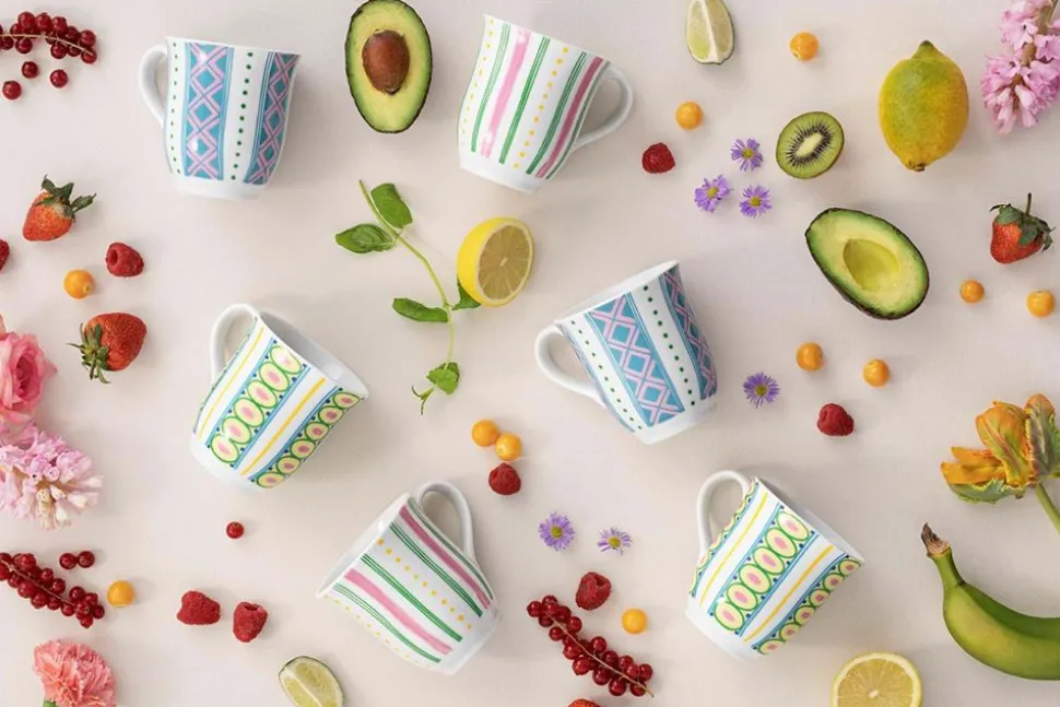 Wunderschöne und skurrile Tassen von , in verspielten Farben und Mustern aus Wiinblads bekanntem Designuniversum. Die Tassen sind in drei verschiedenen Farb- und Musterkombinationen erhältlich, die mit jedem klassischen Set kombiniert werden können. Die Tassen sind mit einem praktischen Henkel ausgestattet und mit feinen organischen Kurven versehen, die der Tasse Eleganz verleihen.