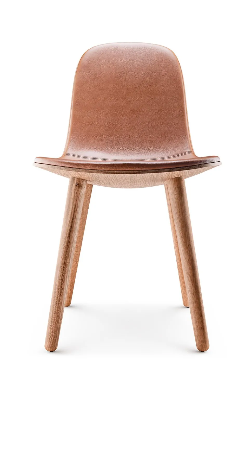Der schöne Schalenstuhl Abalone wurde von dem Design-Duo Tools entworfen. Die Schale des Stuhls wird aus FSC-zertifizierter Eiche hergestellt. Viele Schalenstühle haben auf der Außenseite die gleiche Form wie auf der Innenseite, auf der man sitzt. Deshalb hat das Design-Duo Tools den Stuhl mit einer harten Oberfläche auf der Außenseite in Form eines 3D-geformten Eichenfurniers gestaltet. Auf der Innenseite des Lederbezugs befindet sich eine weiche Innenseite aus Formschaum. Die weiche Innenseite macht den Schalenstuhl bequem. Abalone drückt eine organische Form auf der Außenseite und eine weiche Innenseite aus.