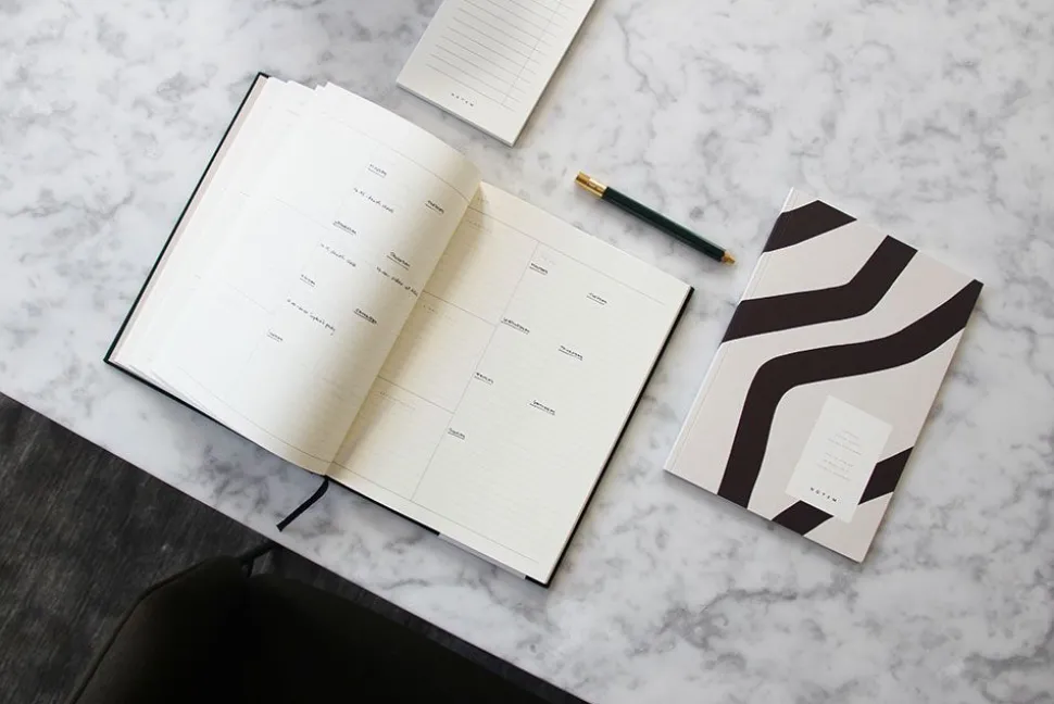 Das schöne und funktionelle EVEN Work Journal wurde von entworfen. Das Notizbuch ist aus hochwertigem Stoff und skandinavischem Qualitätspapier hergestellt. EVEN Work Journal ist ein Notizbuch, das als Arbeitstagebuch gedacht ist. Das Work Journal hilft bei der Strukturierung des Arbeitstages mit Hilfe der beiden Hauptabschnitte. Die beiden Hauptabschnitte bestehen aus einem Abschnitt für Notizen und einem weiteren Abschnitt zur Strukturierung der Aufgaben, Termine und Prioritäten des Arbeitstages.