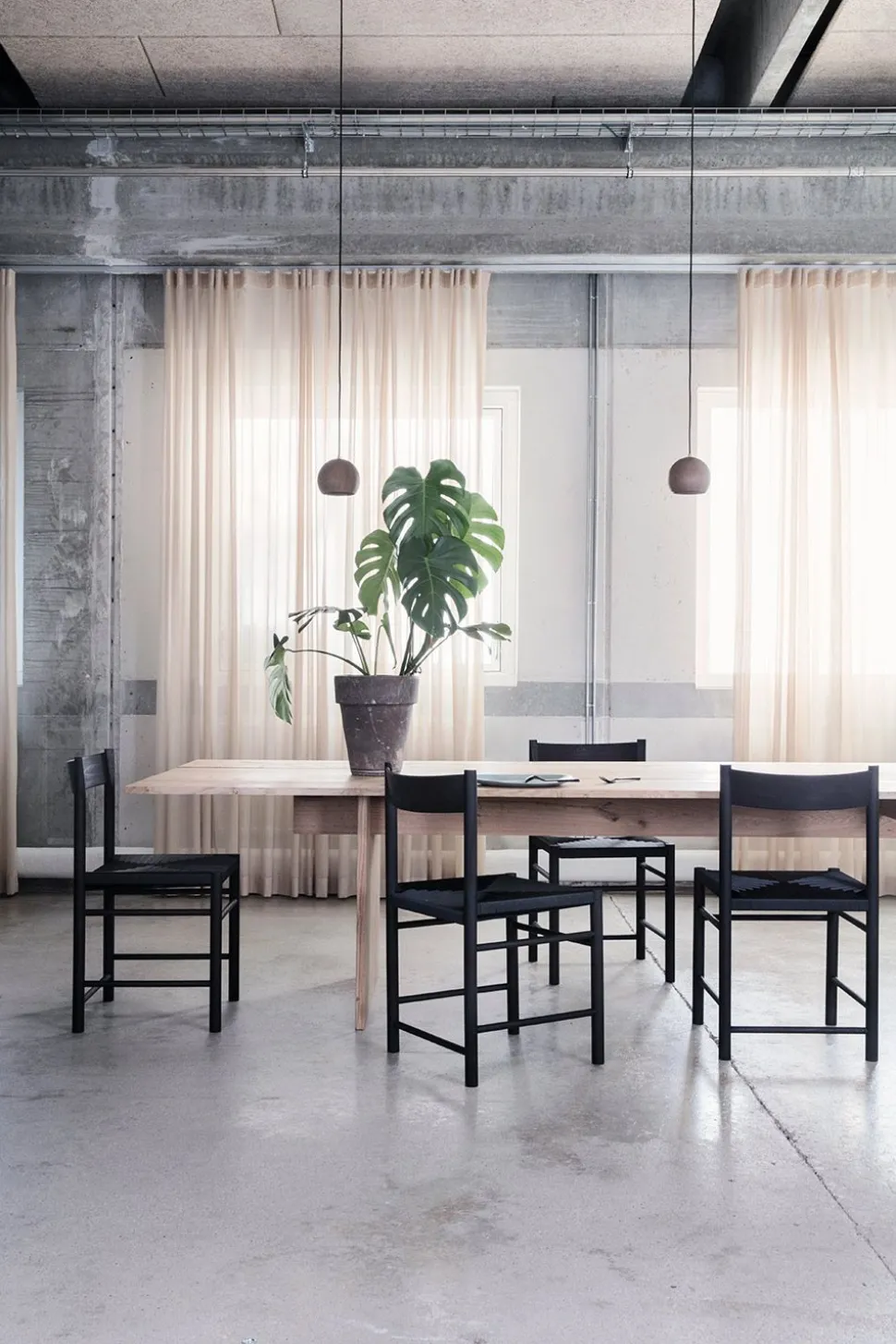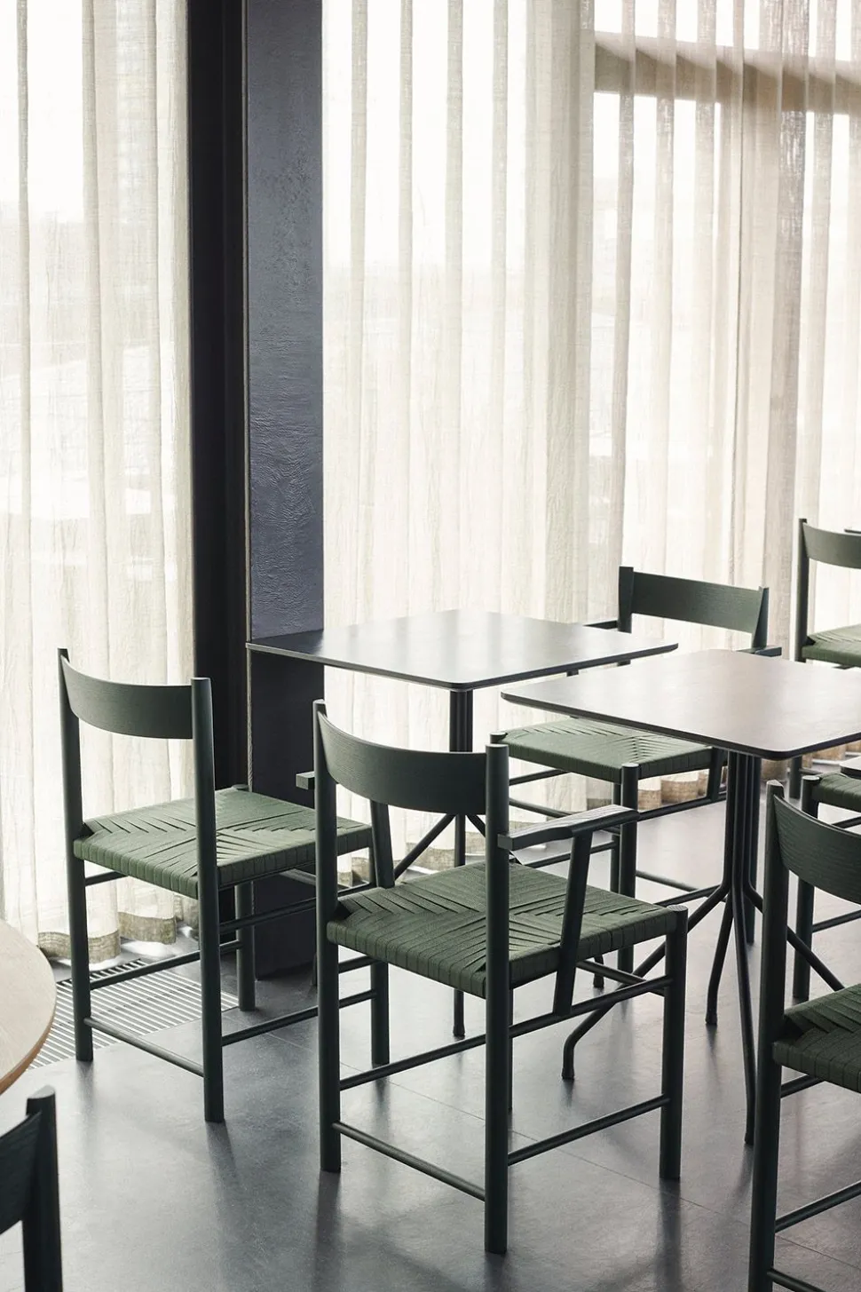 Der F-Chair ist das Ergebnis einer Zusammenarbeit zwischen und der dänische Designer Rasmus Bækkel Fex, der diese Neuinterpretation des klassischen Shaker-Stuhls kreiert hat. Der Stuhl ist bekannt für sein volkstümliches Design und ist äußerst praktisch für den täglichen Gebrauch zu Hause, während er gleichzeitig zeitlos und stilvoll aussieht. Der Sockel besteht aus massiver Buche oder Eiche mit weichen Kanten und einer soliden Konstruktion, die ihn ideal für den täglichen Gebrauch macht, sowie einem Sitz aus Polyester-Geflecht in einem schönen geometrischen Muster.
