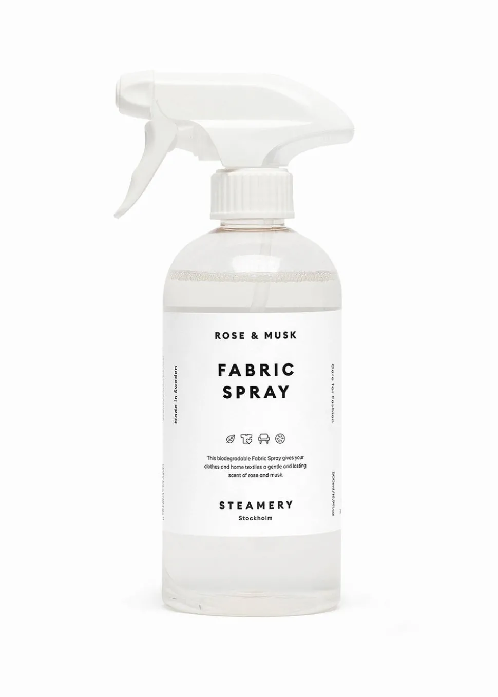 Das abbaubare Textilspray von Steamery verleiht Ihrer Kleidung und Ihren Heimtextilien einen sanften und anhaltenden Duft von Rose und Moschus. Eine einfache Methode, um Ihre Kleidung zwischen den Wäschen frisch zu halten.