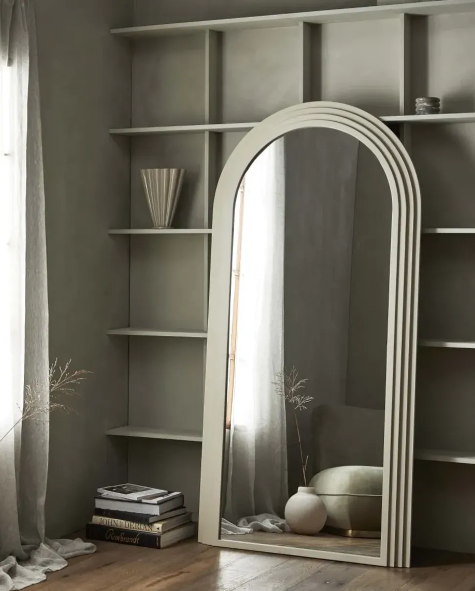 Schöner Spiegel aus Eisen mit lackierter Oberfläche. Der Spiegel hat einige schöne Details, wo rund um den Spiegel ist ein gemalt beige Farbe mit einigen Rillen, die den Spiegel ein einzigartiges Aussehen zu geben. Auf der Rückseite des Spiegels befinden sich Halterungen, so dass er leicht an die Wand gehängt werden kann. Dekorieren Sie Ihr Zuhause mit diesem Spiegel. Hängen Sie es in Ihrer Eingangshalle auf, wo Sie sich leicht im Spiegel sehen können, bevor Sie hinausgehen.