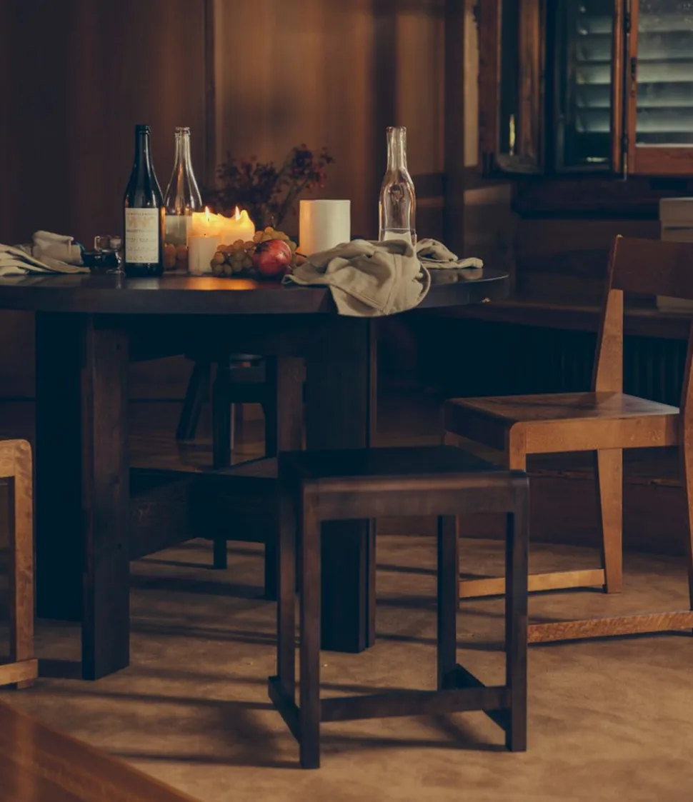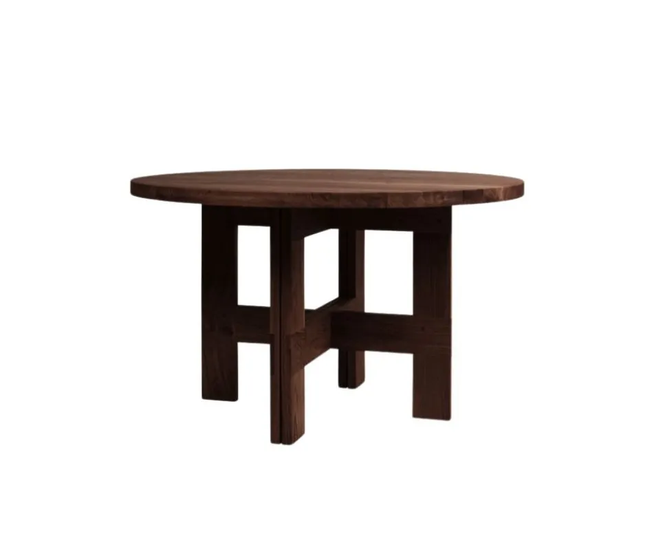 Der Farmhouse Trestle Table Round von , entworfen von Studio im Jahr 2023, verkörpert mit seiner dunklen Eichenoberfläche und seiner robusten Konstruktion rustikale Eleganz. Der Tisch ist aus hochwertigem, massivem Eichenholz gefertigt und weist einen satten, tiefen Ton auf, der Wärme und Raffinesse ausstrahlt. Er wird von traditionellen Böcken getragen, die von klassischen Bauernhäusern inspiriert sind, und bringt einen Hauch von ländlichem Charme in Ihr Zuhause. Dieser exquisite Esstisch ist ein Blickfang in jedem Wohnbereich, jeder Küche und jedem Esszimmer und bietet sowohl Schönheit als auch Funktionalität.
