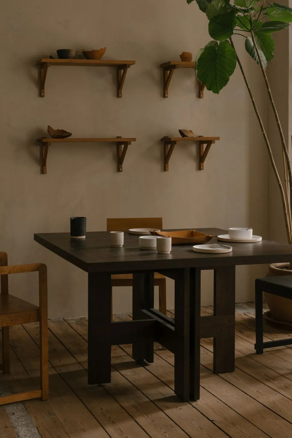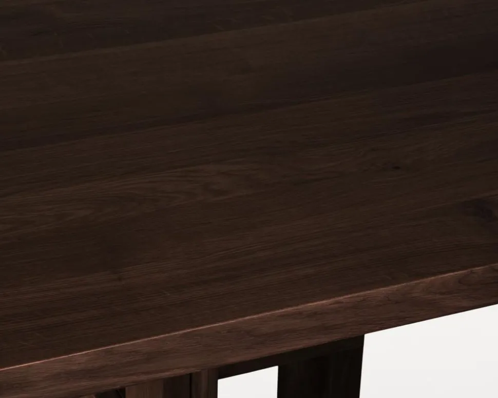 Funktional bietet der Farmhouse Trestle Table Square reichlich Fläche zum Essen, Arbeiten oder Ausstellen. Dank seiner quadratischen Form passt er sowohl in große als auch in kleine Räume und sorgt für ein ausgewogenes, harmonisches Erscheinungsbild. Kombinieren Sie ihn mit minimalistischen Stühlen oder rustikalen Bänken aus der FRAMA-Kollektion, um eine stimmige, einladende Atmosphäre zu schaffen. Ergänzen Sie das tiefe Eichenholz-Finish mit weichen Textilien und Keramik-Accessoires, um seine natürliche Schönheit zu unterstreichen.