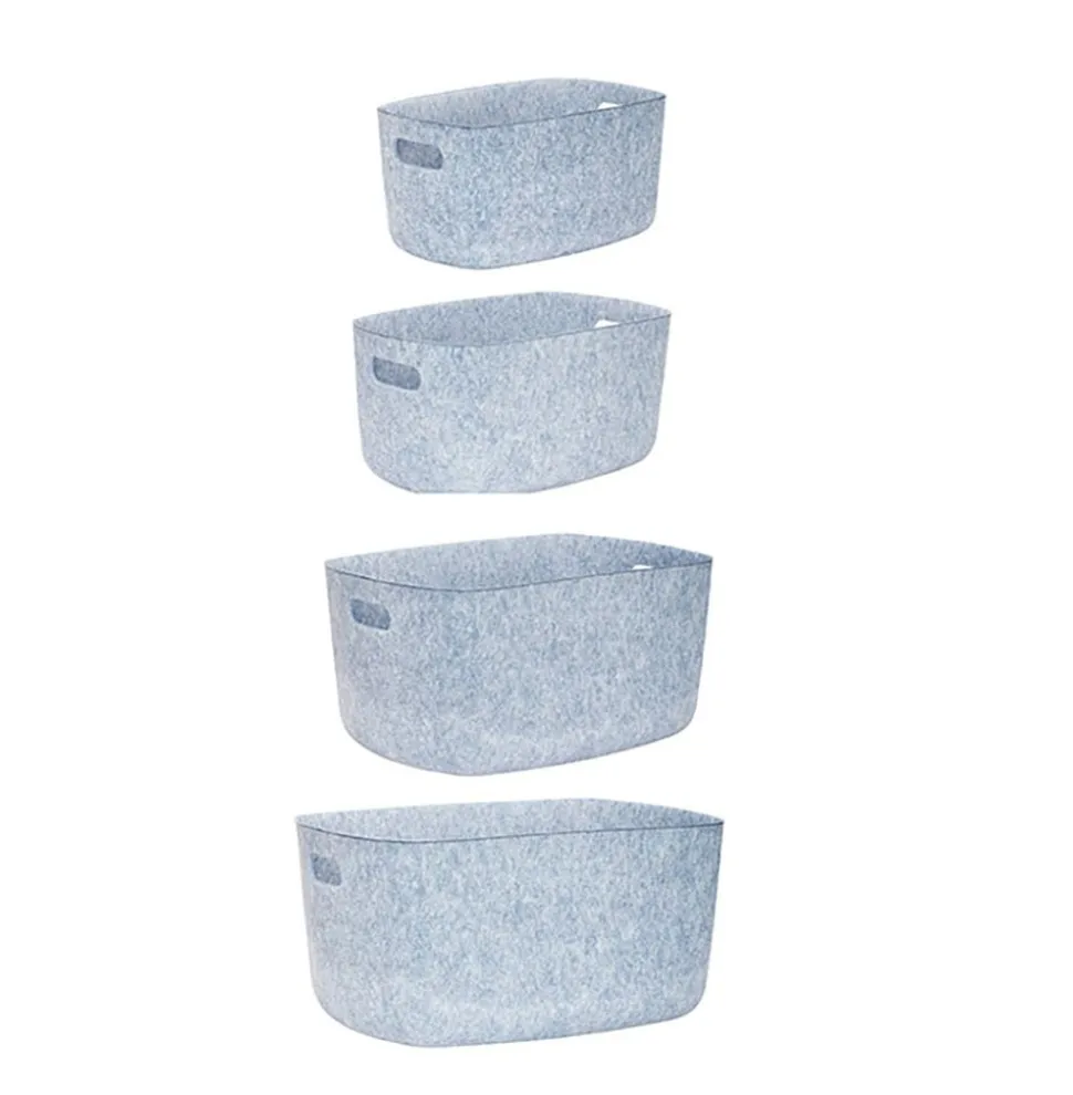 Filzkorb im 4er-Set von . Die Körbe werden im 4er-Set geliefert und sind in vier verschiedenen Größen erhältlich. Die Farbe der Filzkörbe ist grau.