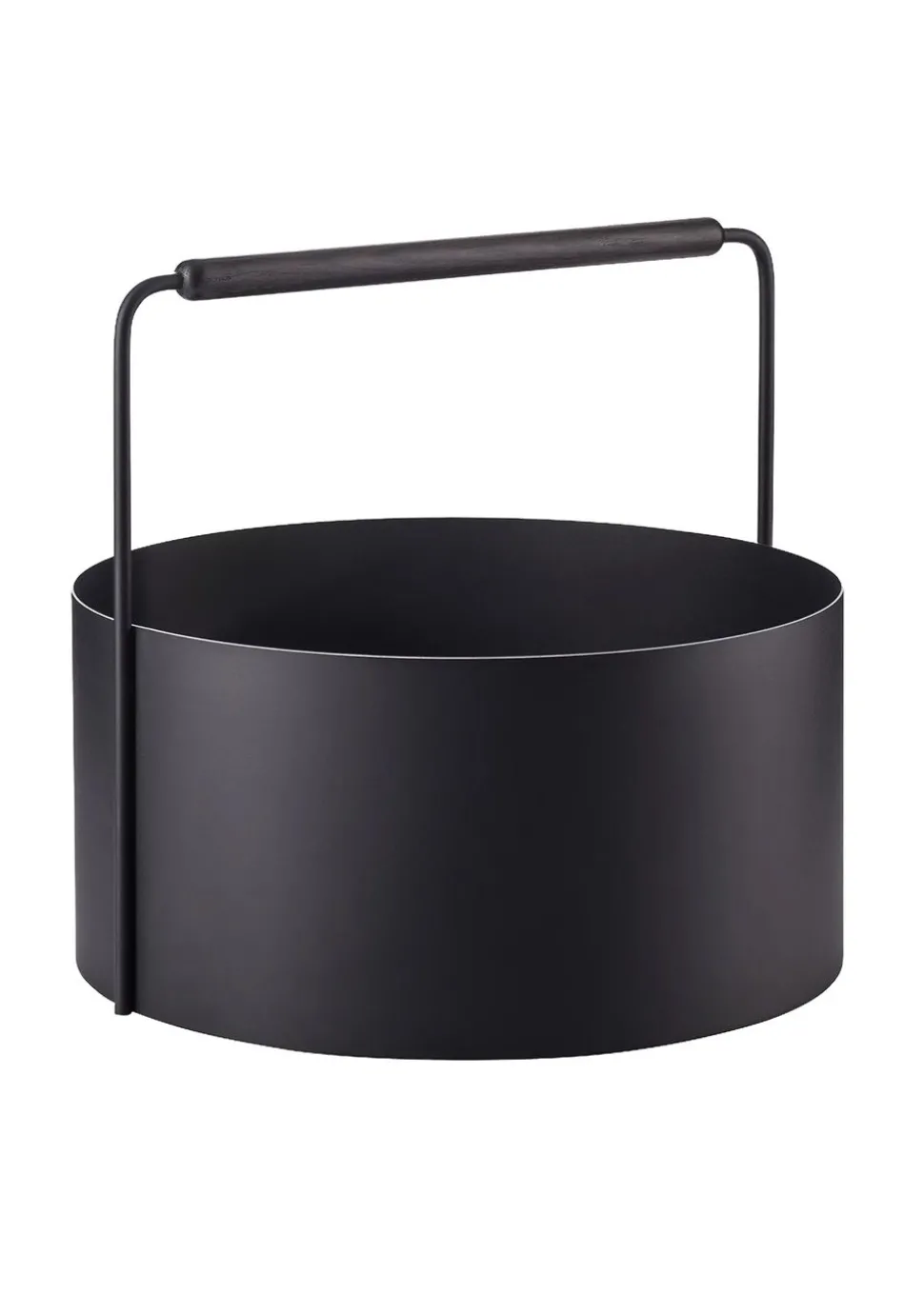Der Ashi Kaminholzkorb von , entworfen von Kaschkasch, verbindet minimalistische Ästhetik mit funktionaler Eleganz. Der schwarz pulverbeschichtete Stahlkorb kontrastiert wunderschön mit dem natürlichen Eichenholzgriff und verleiht ihm eine warme und organische Dimension. Inspiriert von der japanischen Ästhetik der Einfachheit und Ruhe, bietet Ashi eine diskrete und stilvolle Aufbewahrungslösung für Brennholz.