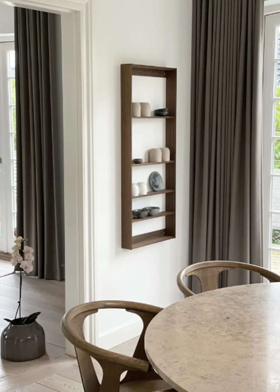 Dieses einzigartige Regal ist eine Erweiterung der bereits bestehenden Serie von „foursquare“. Sie können dieses Regal überall in Ihrer Wohnung aufstellen und es mit vielen schönen und persönlichen Gegenständen dekorieren. Durch die Dekoration des Regals sorgen Sie dafür, dass die Wohnungen viel Persönlichkeit bekommen. Stellen Sie das Regal zum Beispiel in Ihrem Badezimmer auf, wo Sie Ihre Lieblingsprodukte leicht erreichen können. Sie können das Regal sowohl in Eiche als auch in Räuchereiche bekommen, beide sind einzigartig und haben ihre eigene Textur. „Fivesquare“ ist einfach zu montieren und nimmt mit seiner geringen Regaltiefe von nur 85 mm nicht viel Platz in Anspruch. FSC-zertifizierte Eiche, aus der Eiche und Räuchereiche hergestellt werden, ist ein umweltfreundliches skandinavisches Material.