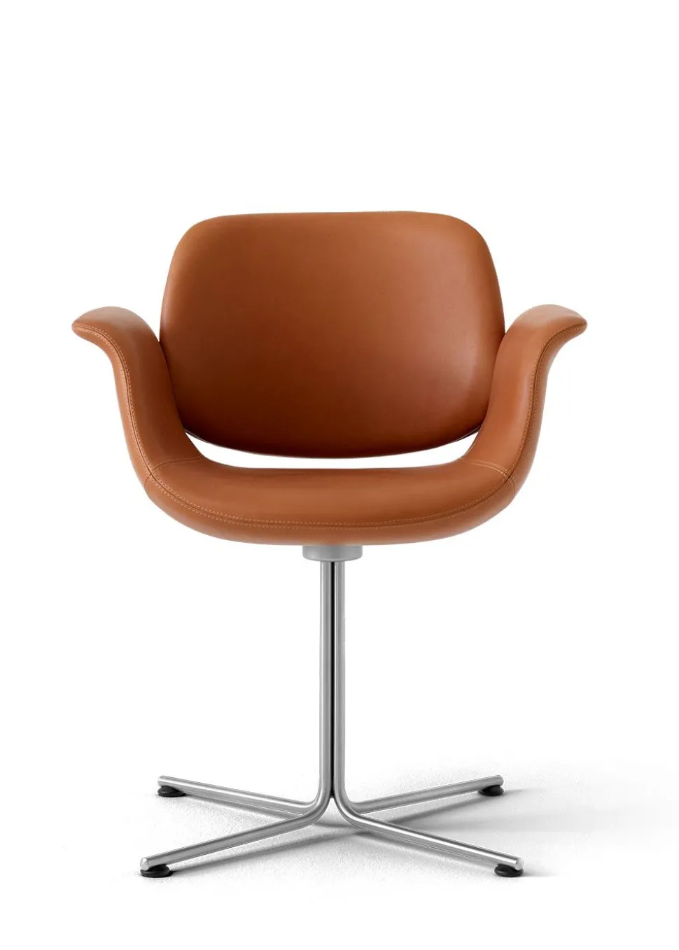 Der Flamingo“-Stuhl wurde von dem Duo Foersom & Hiort-Lorenzen entworfen, die für einige der meistverkauften Möbel von Fredericia verantwortlich sind. Dieser Neoklassiker ist besonders charakteristisch für ihre einzigartige Zusammenarbeit. Der Stuhl umrahmt eine einzigartige Ästhetik, die ihre Formen aus den Konturen des eleganten Tieres Flamingo bezieht. Die Flügel des Vogels sind in einer schwebenden Schale wiedergegeben, die den Sitz und die Armlehnen formt, die mit einer Rückenlehne zusammengesetzt sind, die mit ihrem schwebenden Design den visuellen Ausdruck herausfordert. Der Stuhl ruht – wie der Flamingo – auf einem einzigen schlanken Bein, das den Stuhl anhebt und dem Möbel eine gewisse Leichtigkeit verleiht. Alles zusammen ergibt einen Stuhl, dessen Designsprache organisch und fließend ist, ohne Kompromisse bei Qualität und Komfort einzugehen. Das Modell 3381 ist mit einem praktischen Drehmechanismus ausgestattet, der ideal für den Einsatz im Büro ist.