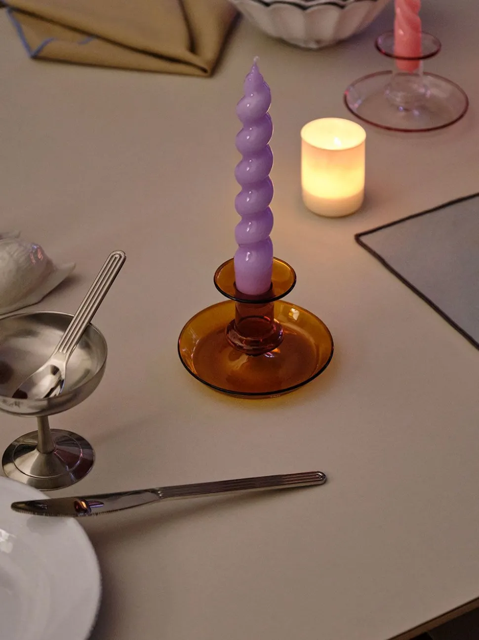 Flare ist ein eleganter und unverwechselbarer Kerzenständer aus Borosilikatglas. Die Kerzenhalter lassen sich leicht über Größe und Farbe hinweg kombinieren, um eine einzigartige Farbsymphonie auf der Fensterbank oder auf dem Tisch zu erzeugen.