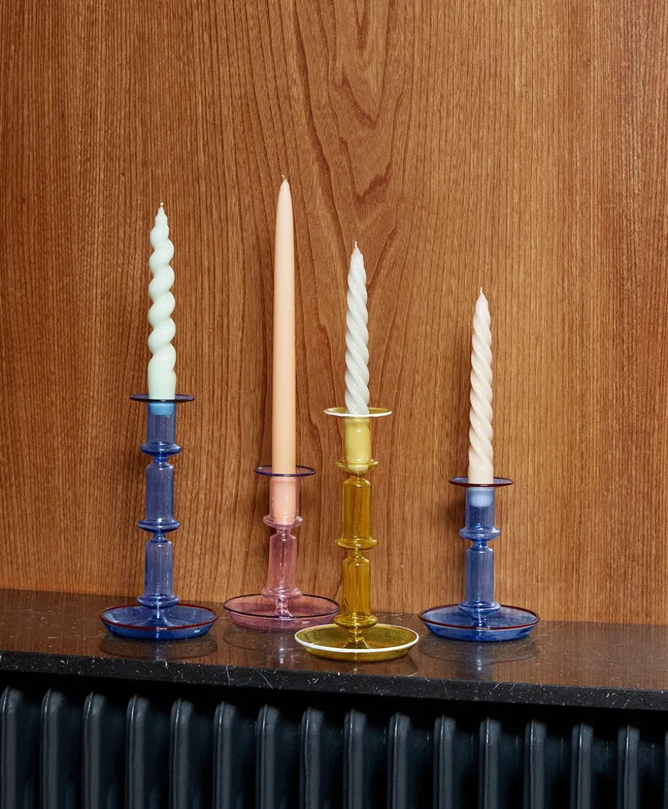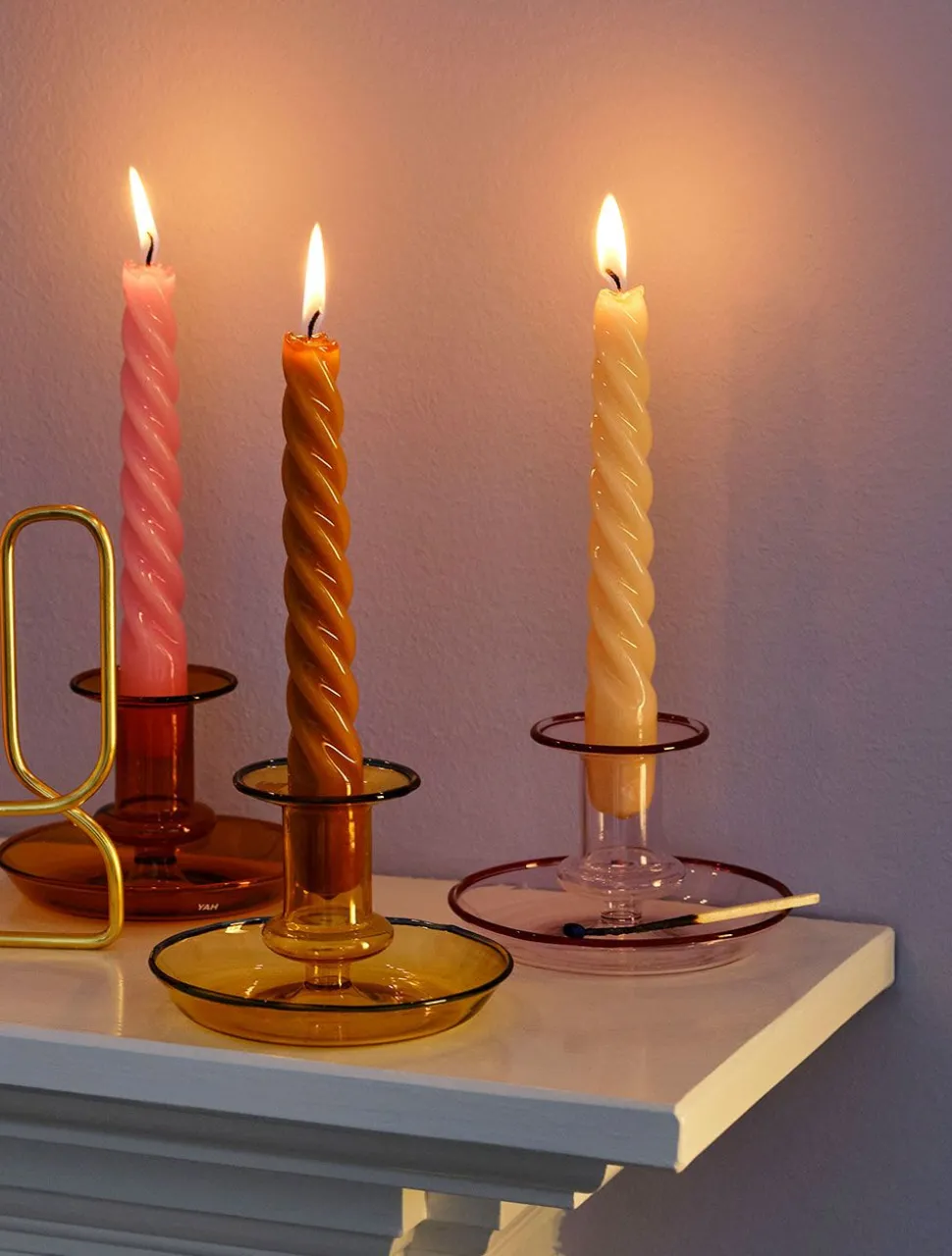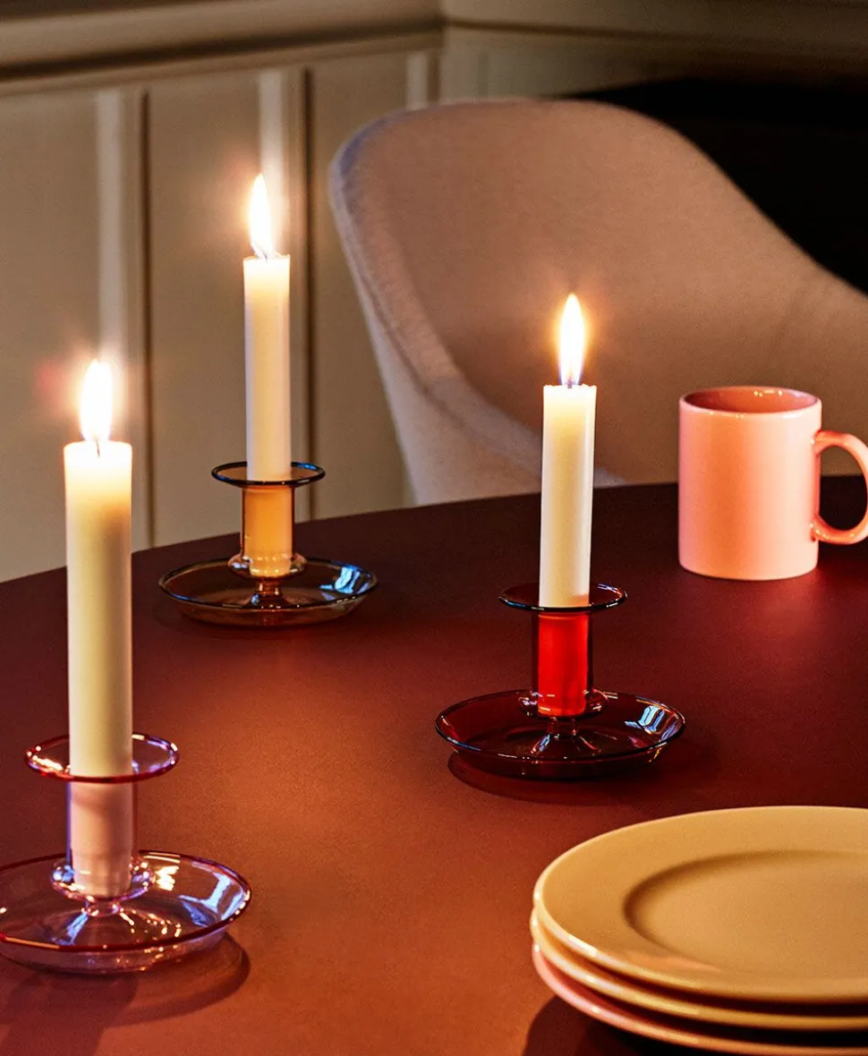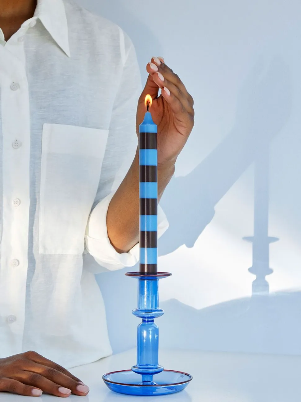 Flare ist ein eleganter und unverwechselbarer Kerzenständer aus Borosilikatglas. Die Kerzenhalter lassen sich leicht über Größe und Farbe hinweg kombinieren, um eine einzigartige Farbsymphonie auf der Fensterbank oder auf dem Tisch zu erzeugen.