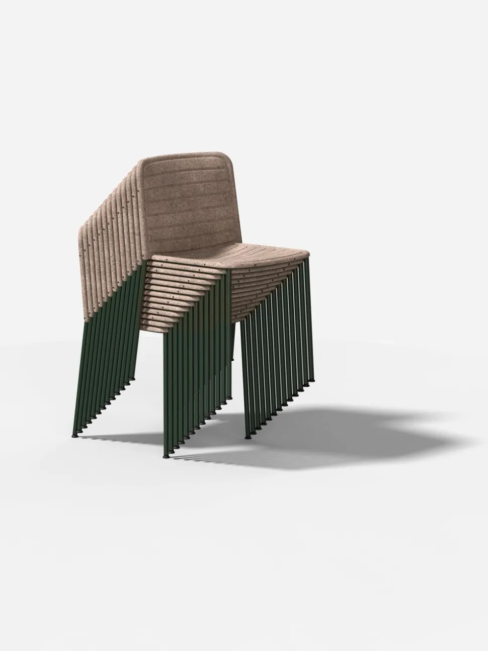 Der Flax Stacker ist aus einem Verbundstoff aus natürlichen Flachsfasern und PLA-Harz (Polymilchsäure) gefertigt, beides zu 100 % biologisch abbaubare Materialien. Diese umweltbewusste Designentscheidung steht im Einklang mit den jüngsten Fortschritten in der verantwortlichen Technologie, wie sie auch bei der Herstellung von Koffern und Autoinnenräumen verwendet wird. Durch sein geringes Gewicht und seine Stapelbarkeit ist der Stuhl praktisch für verschiedene Umgebungen und bietet sowohl Komfort als auch Stil.