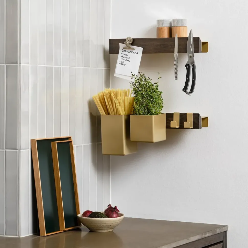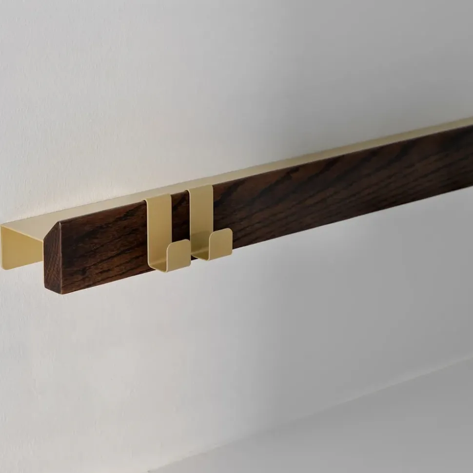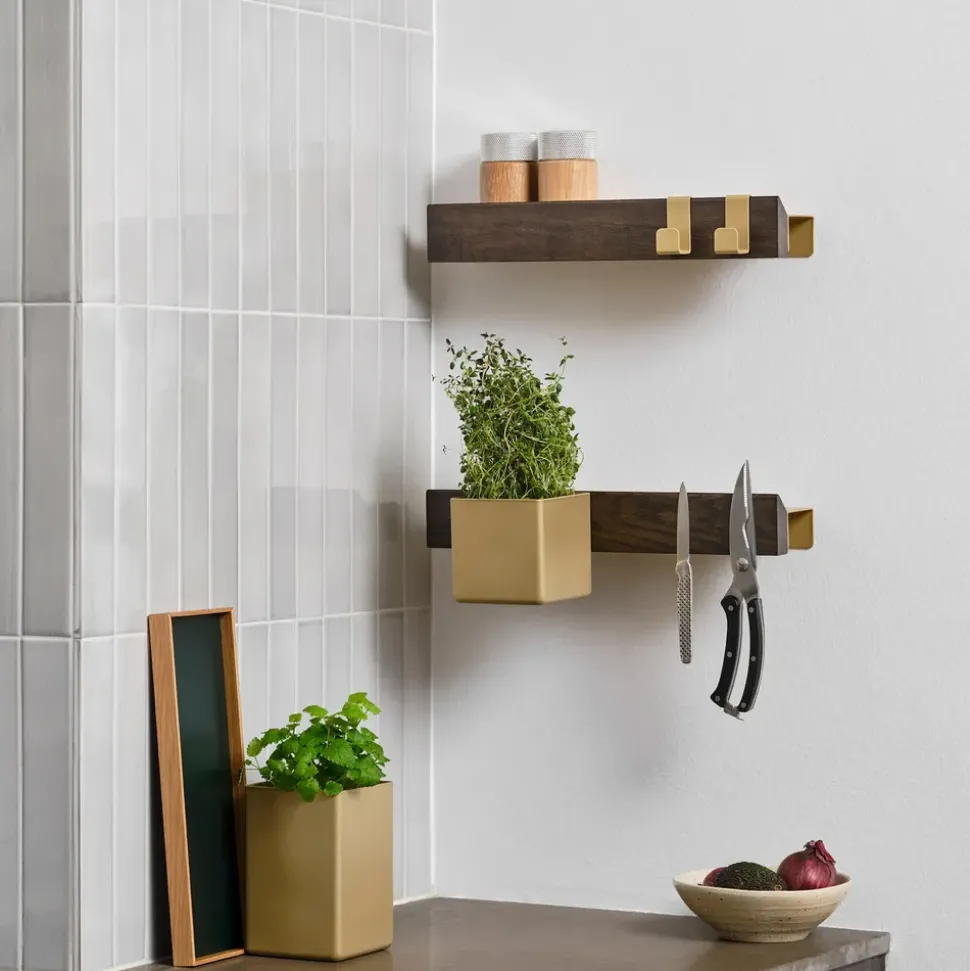 Die Flex-Haken von sind Teil des modularen Flex-Universums, das Funktionalität und Ästhetik mit einem spielerischen, aber vollendeten Ausdruck verbindet. Sie sind aus elegantem Messing gefertigt und so konzipiert, dass sie in das Flex-Magnetregal eingeklickt werden können, und verleihen der Einrichtung Wärme und Struktur. Die im Zweierset verkauften Haken lassen sich verschieben, einstellen und genau dort platzieren, wo sie gebraucht werden – ohne Schrauben oder Werkzeug.